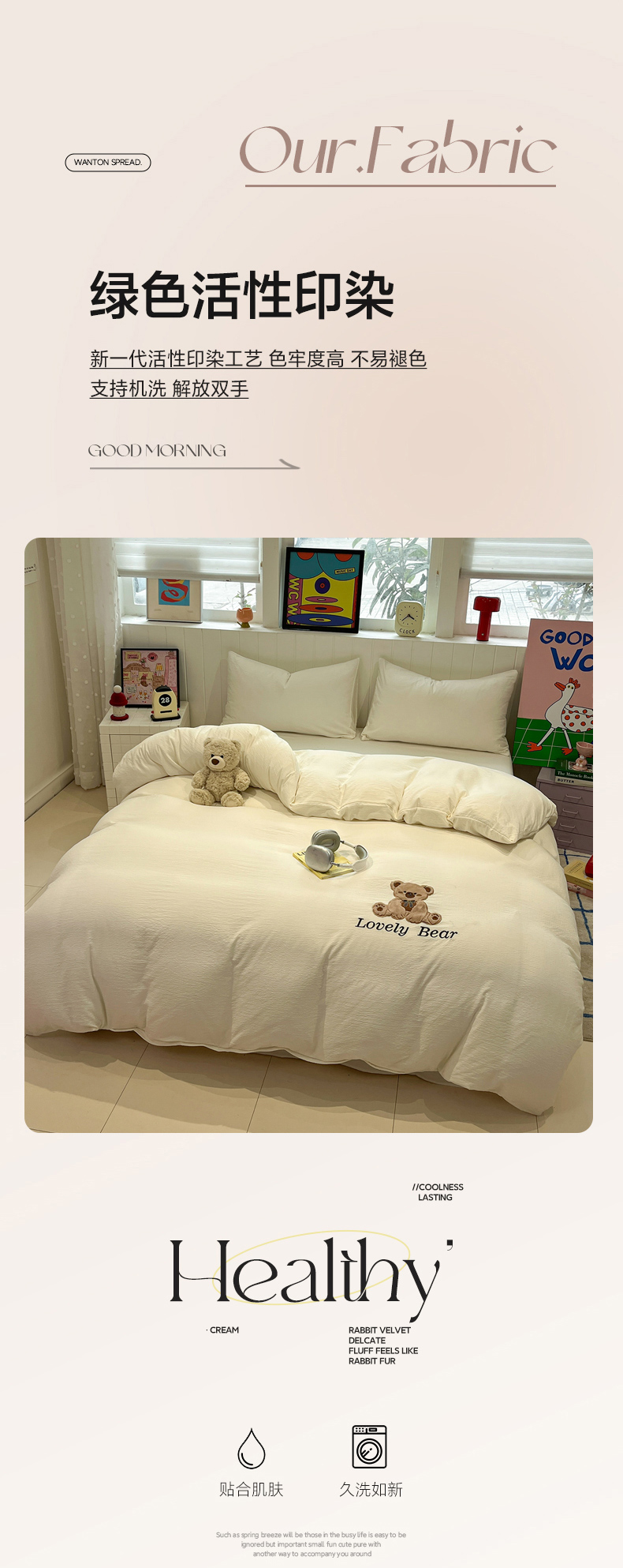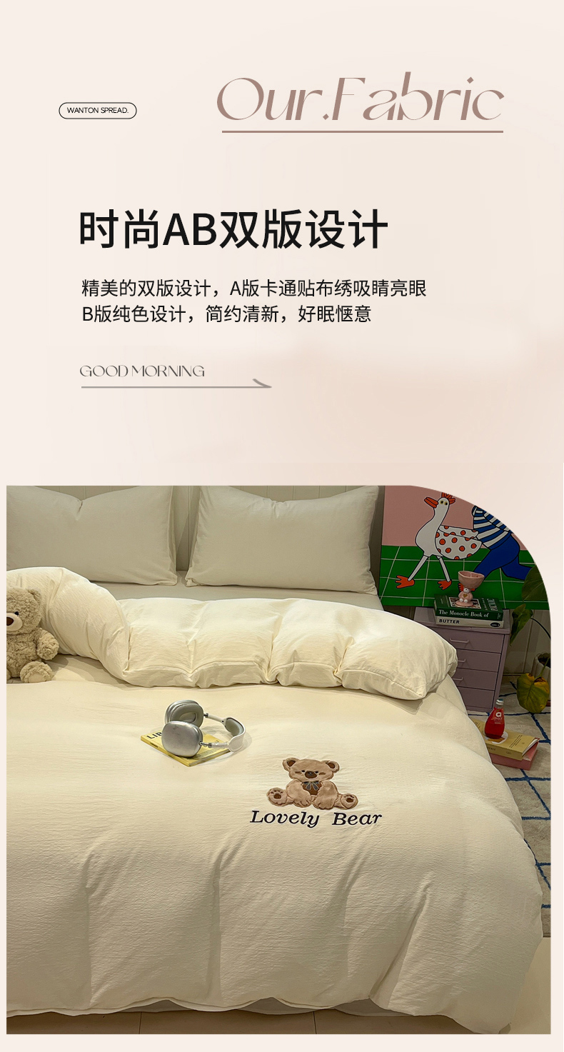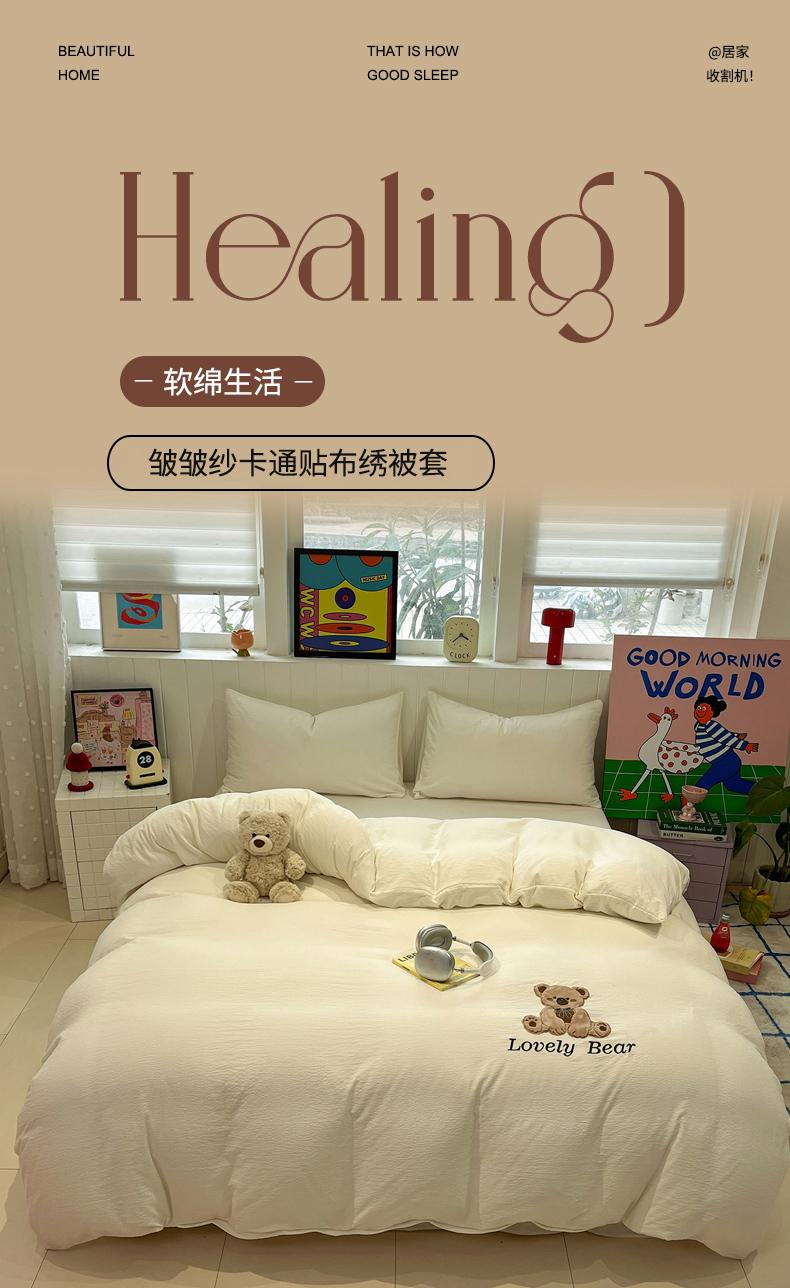 (总)爱思凯家纺 2026新款皱皱纱卡通贴布绣-咖崽熊被套
