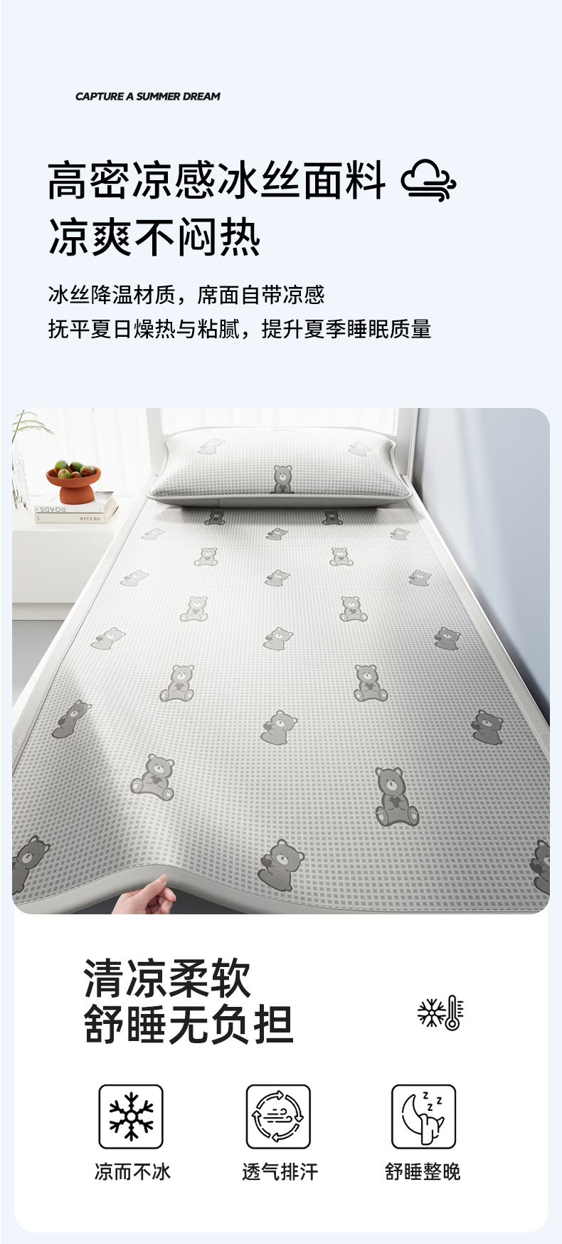 (总)爱思凯家纺 2026新款元森条席-冰丝凉席 学生款(床席款)
