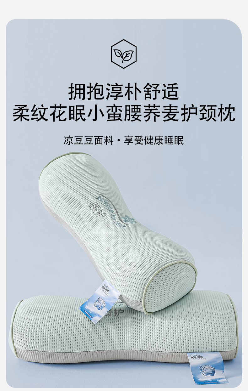 商品名称:麦肯锡 2026新款柔纹花眠小蛮腰荞麦护颈枕枕头枕芯 绿拼灰