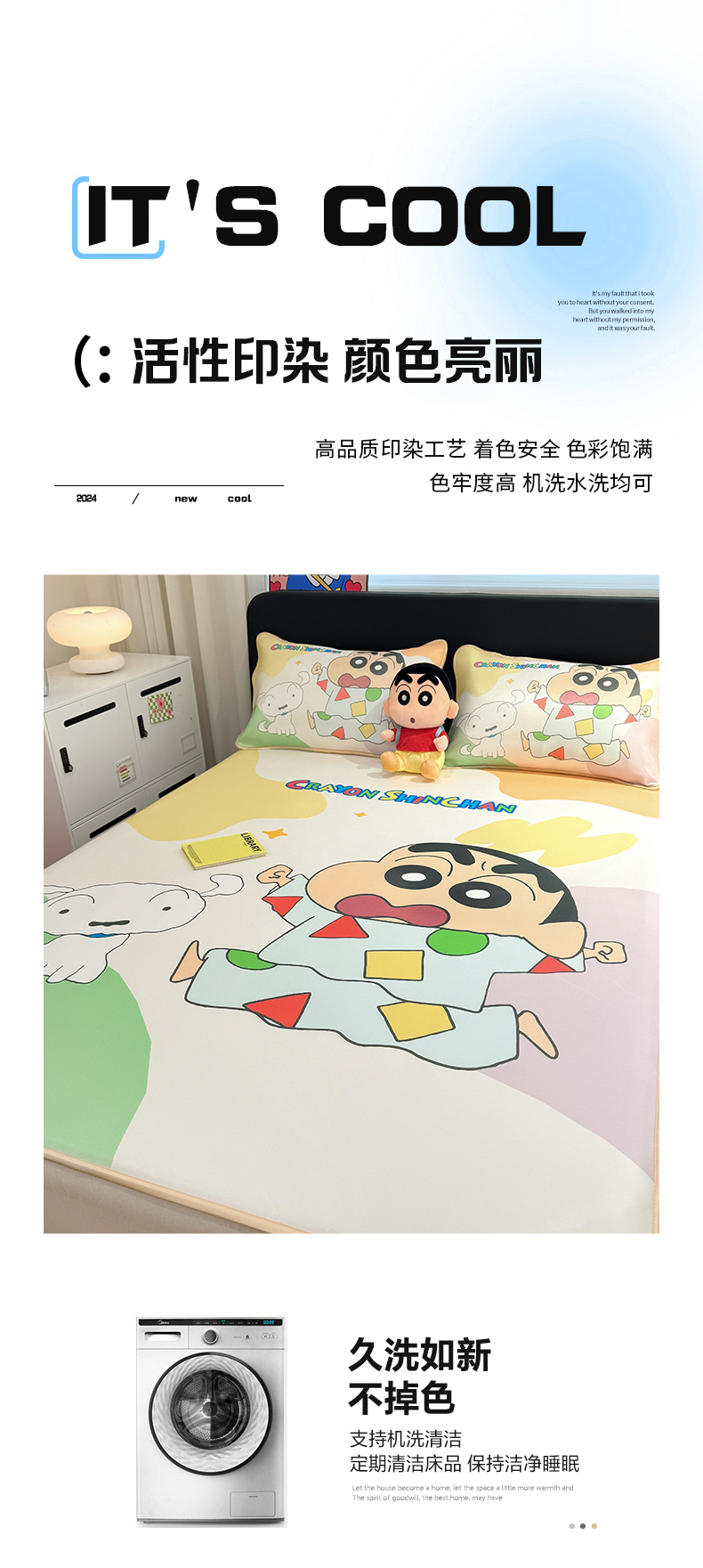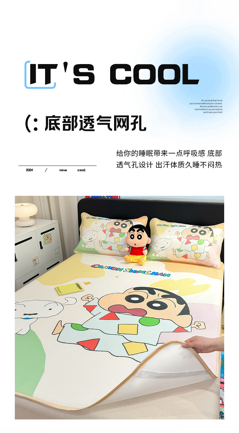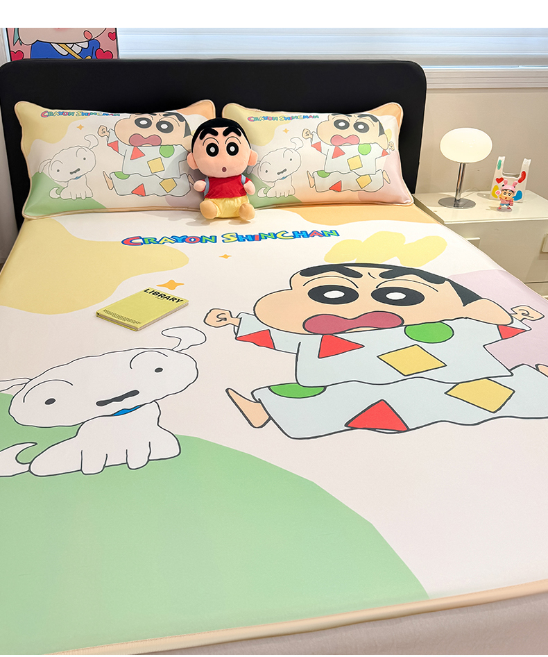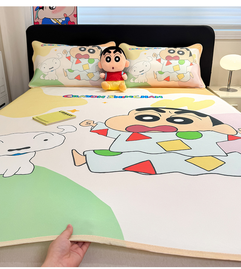 • 91家纺网 家纺一手货源 找家纺 博雅 2026新款蜡笔小新正版授权小冰皮大版印花凉席-平铺款 大版-睡衣小新