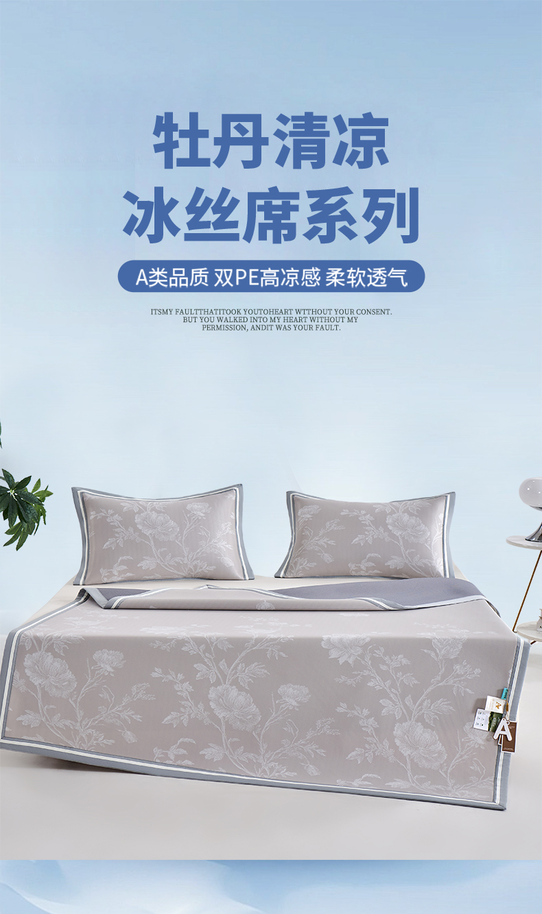 (总)小牛席业 2026新款牡丹清凉大提花冰丝席凉席席子
