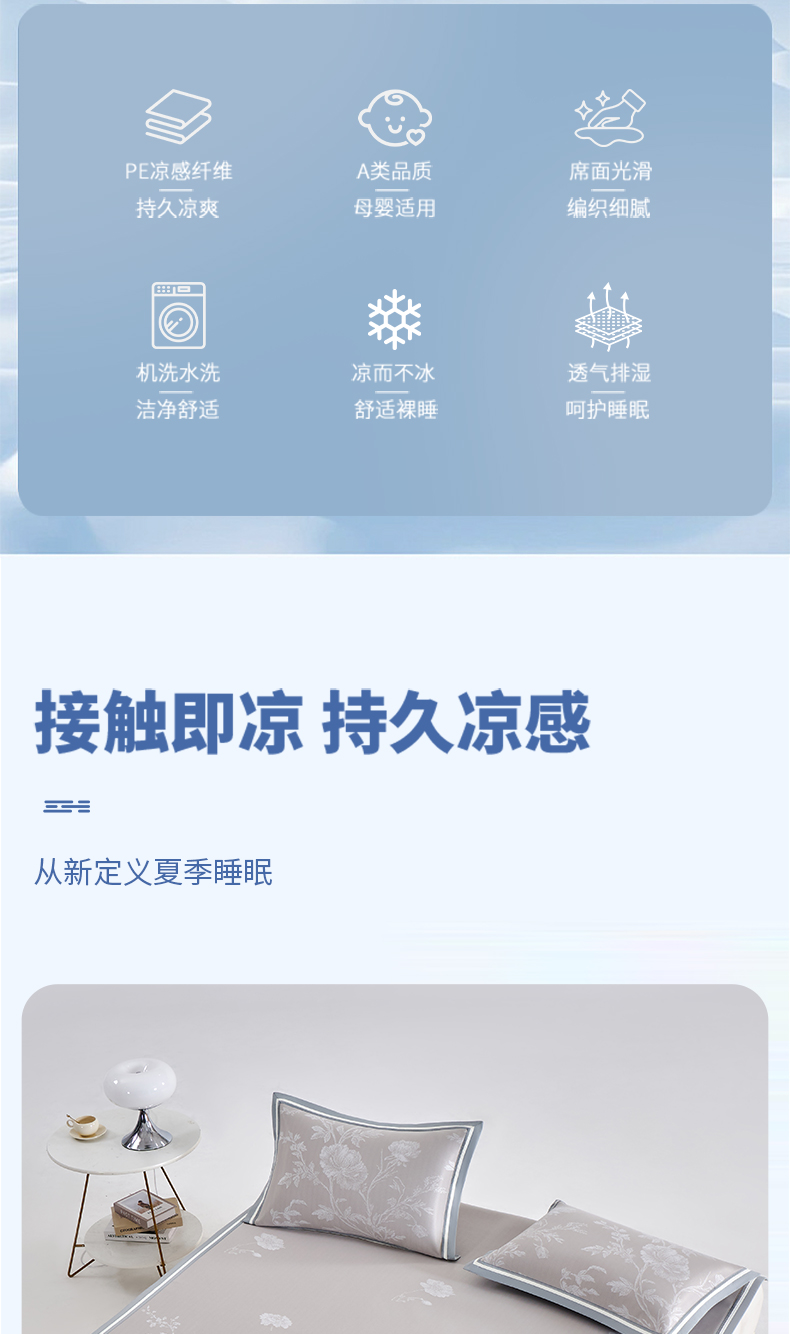 180x200cm凉席+枕套一对