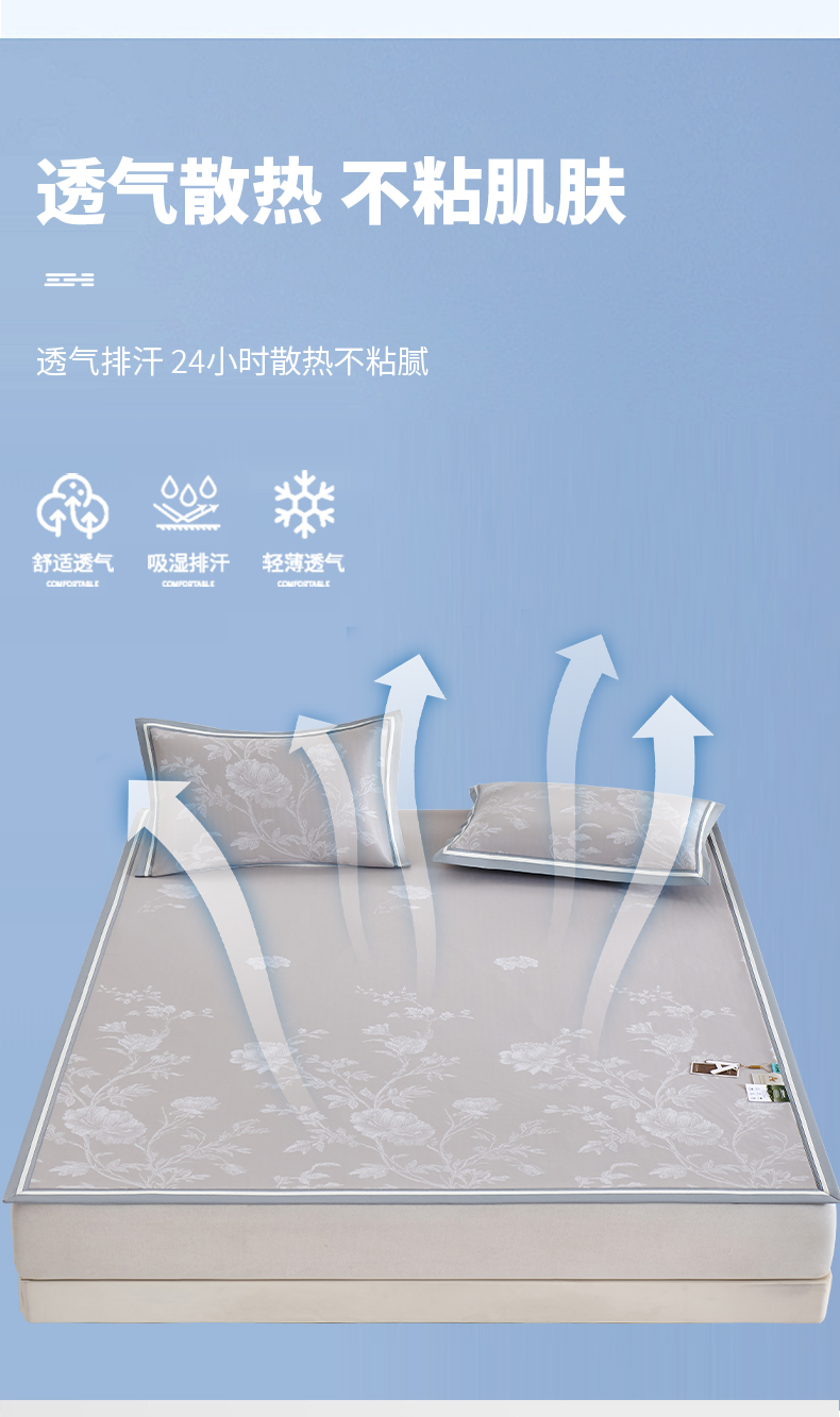 (总)小牛席业 2026新款铃兰冷感冰丝席凉席席子床笠款,铃兰-粉色,铃兰-灰色,铃兰-蓝色,铃兰-香槟