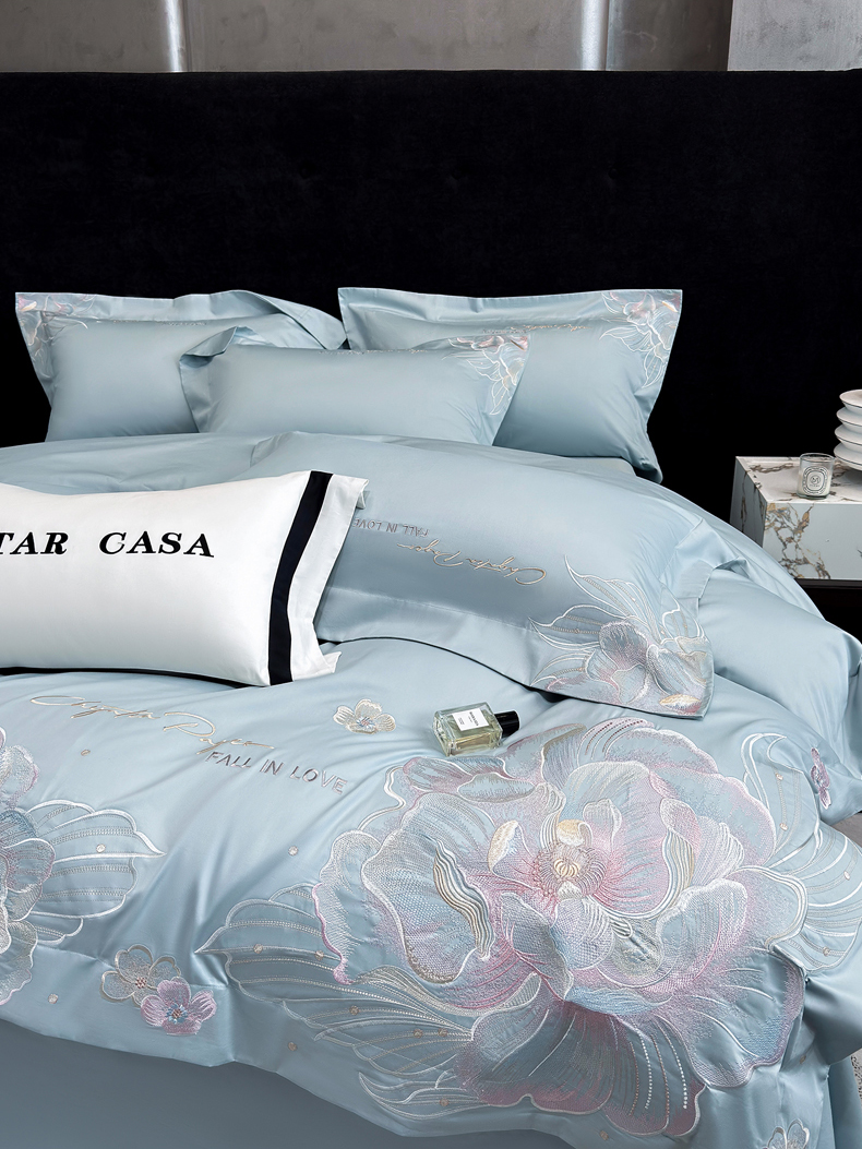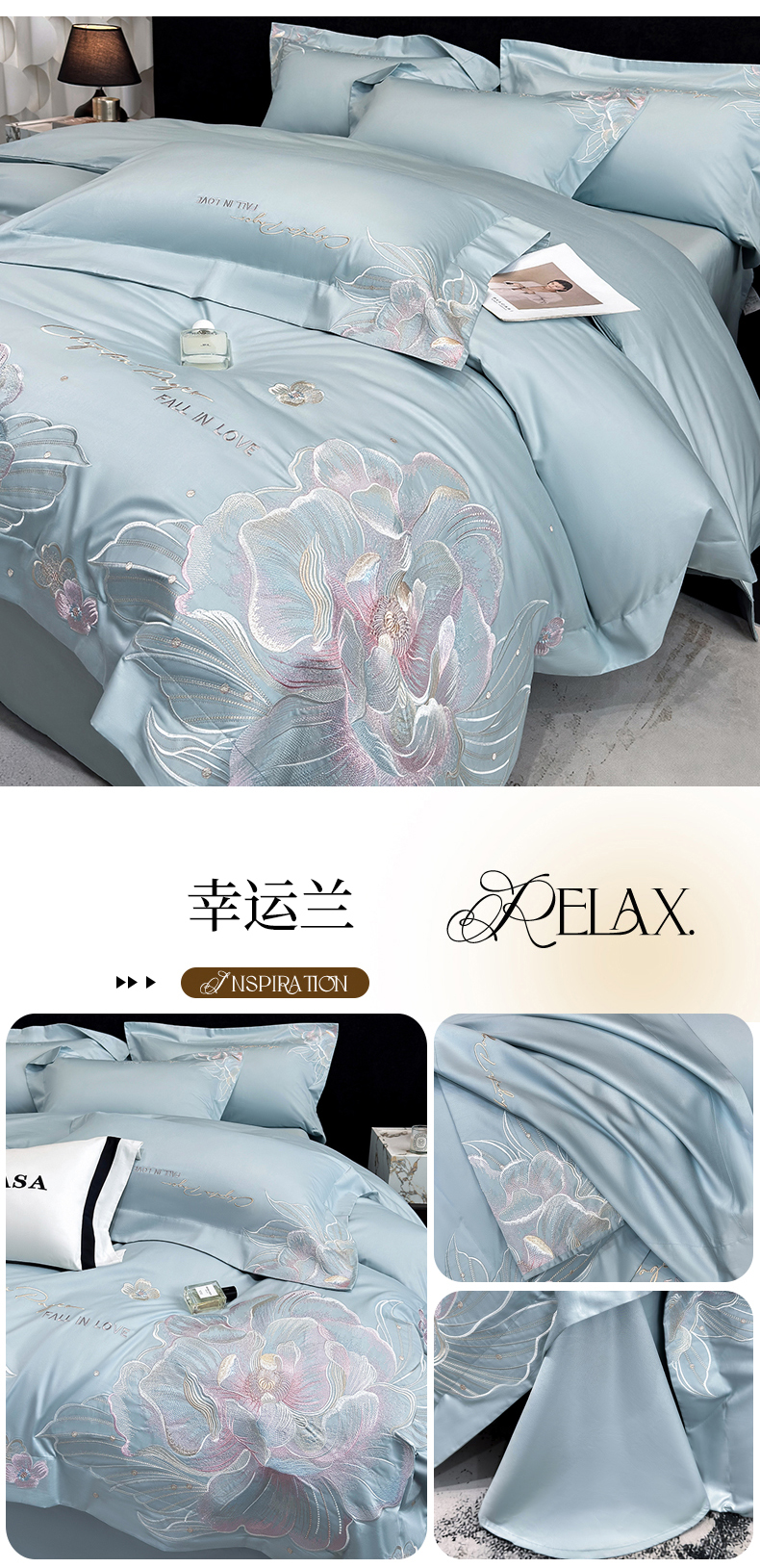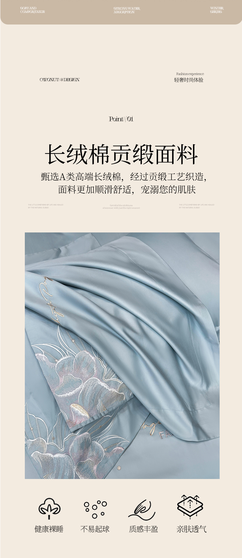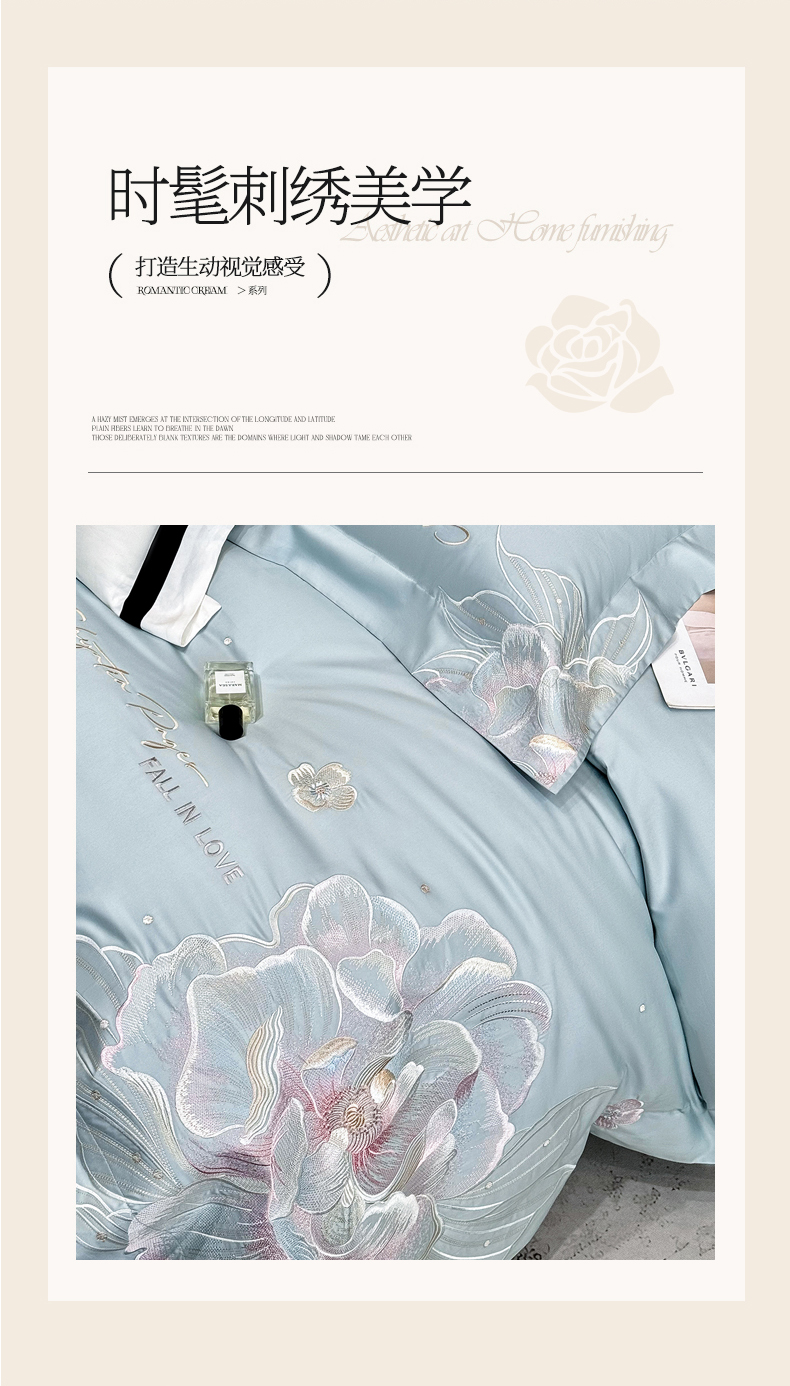 (总)星蕴家纺 2026新款50贡缎长绒棉纯棉绣花四件套-花瑾,花瑾-晴山蓝,花瑾-梦幻紫,花瑾-清新绿,花瑾-邂逅粉