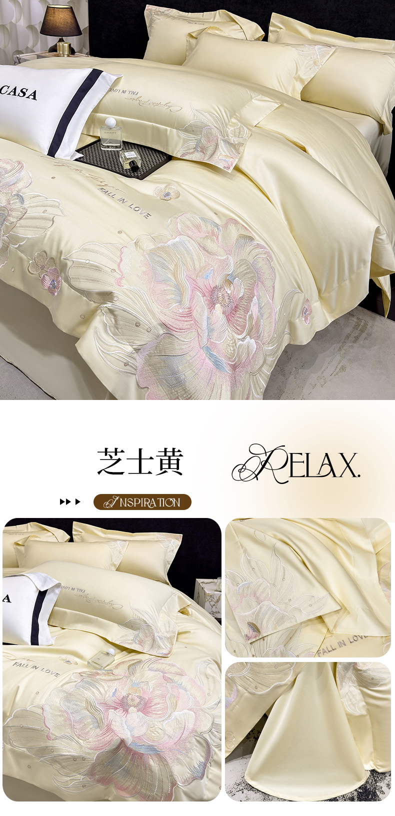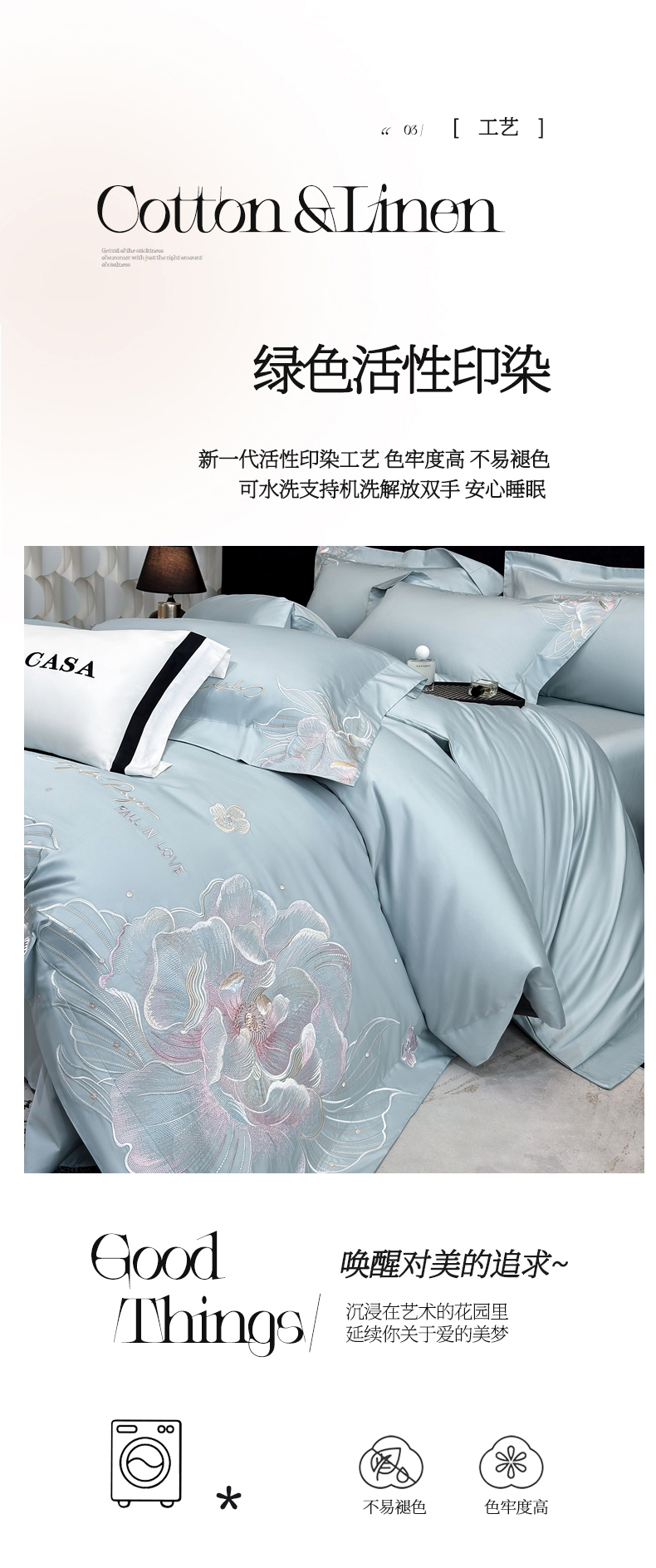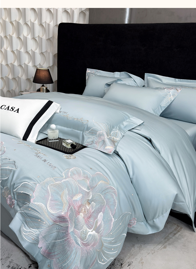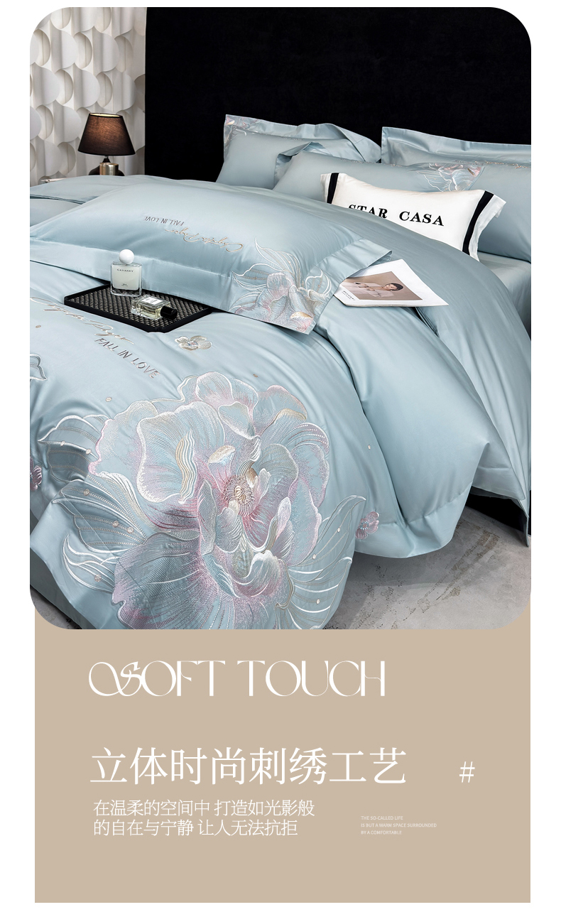 (总)星蕴家纺 2026新款50贡缎长绒棉纯棉绣花四件套-花瑾,花瑾-晴山蓝,花瑾-梦幻紫,花瑾-清新绿,花瑾-邂逅粉