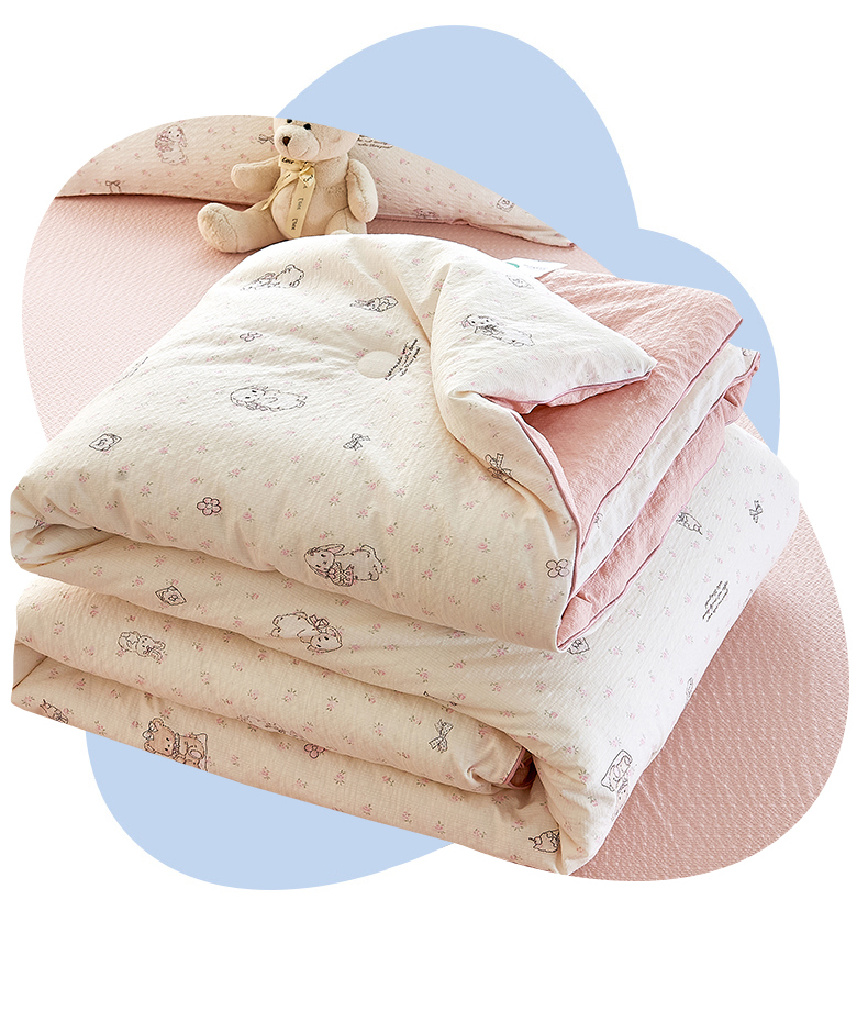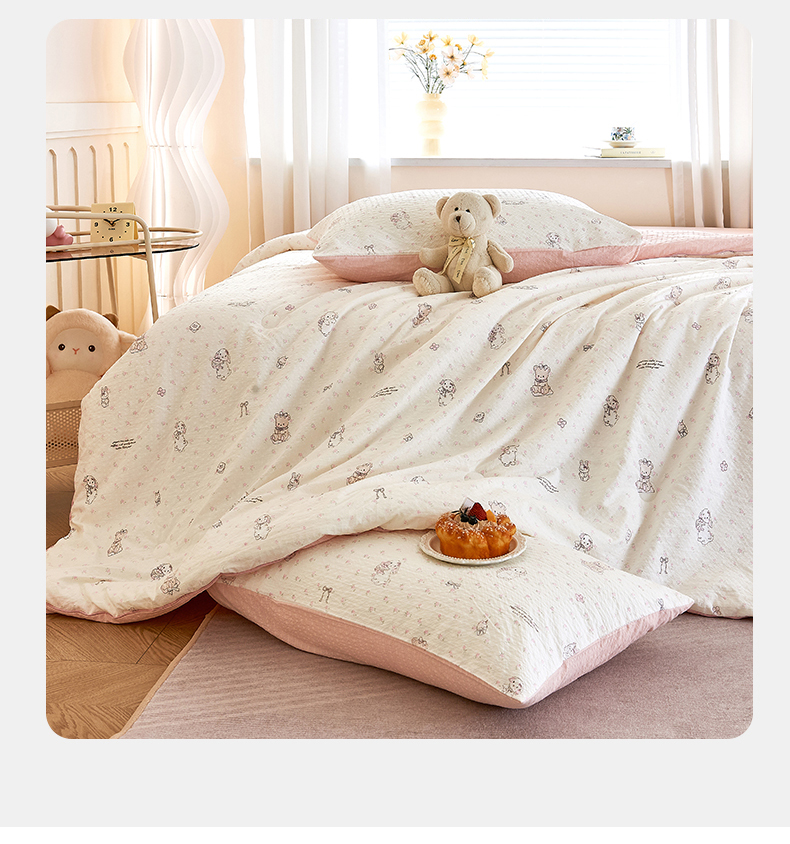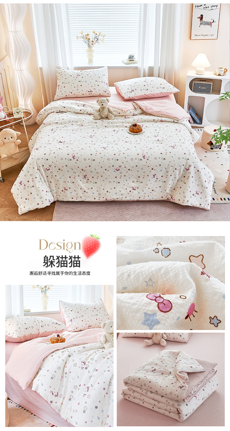 • 91家纺网 家纺一手货源 找家纺 铺尚美家纺 2026新款泡芙棉夏被四件套泡芙纱单夏被空调被夏凉被-印花 躲猫猫