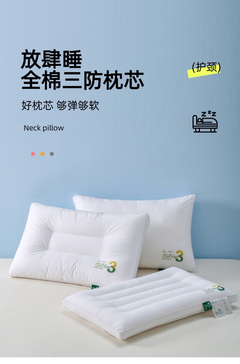 爱来伊家纺 2026春夏新款全棉三防枕 枕头枕芯 全棉三防枕-高枕