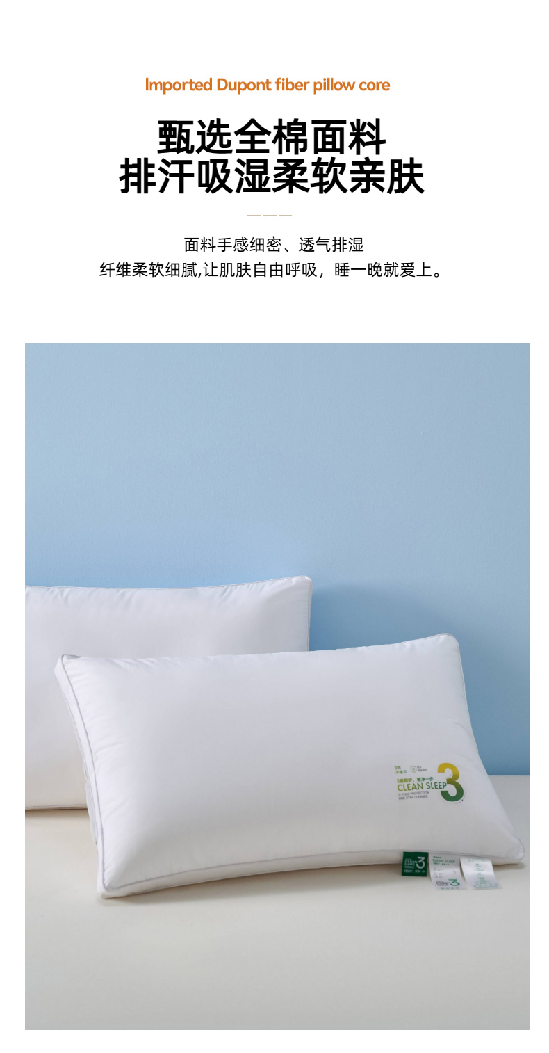 商品名称:爱来伊家纺 2026春夏新款全棉三防枕 枕头枕芯 全棉三防枕-高枕