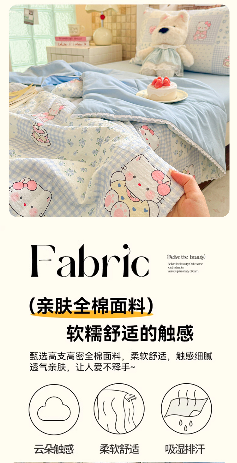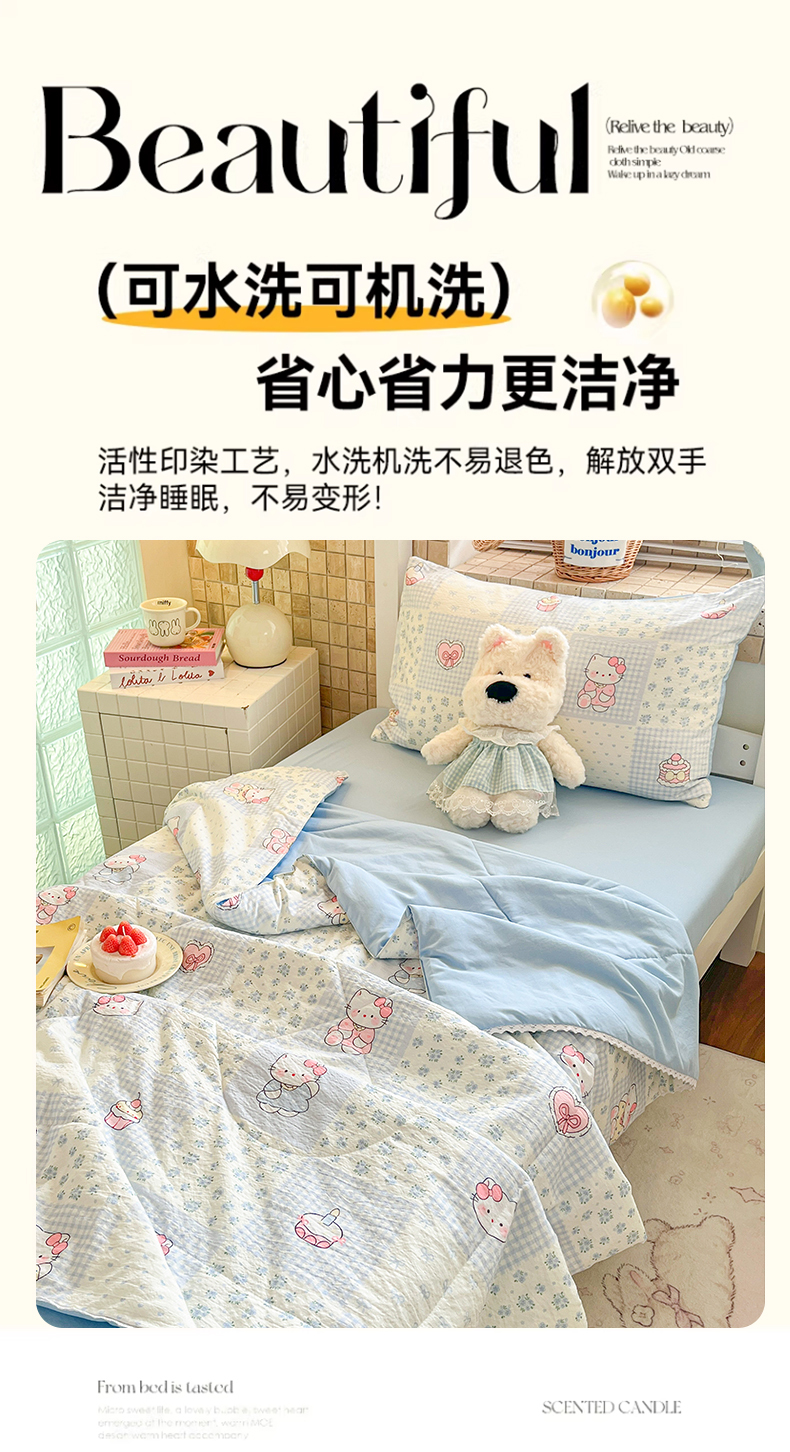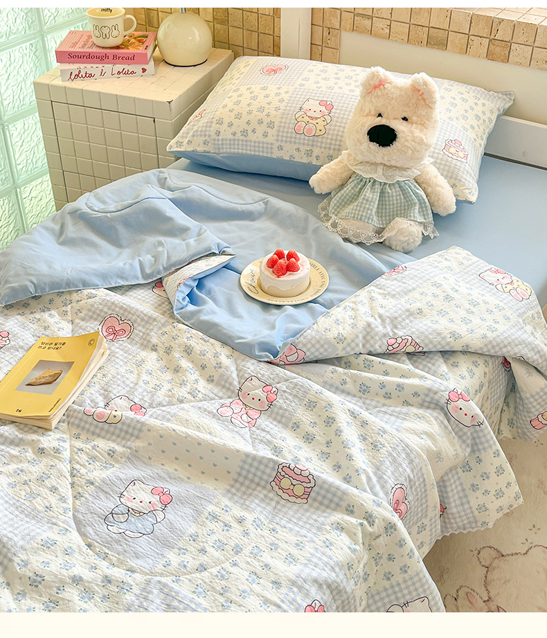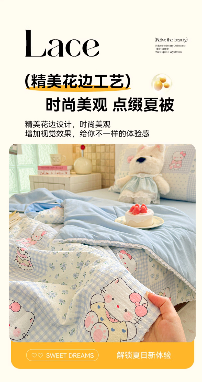 商品名称:川悦生活 2026春夏新款双层纱皱皱纱学生床夏被夏凉被空调被三件套 夏被小猫庄园