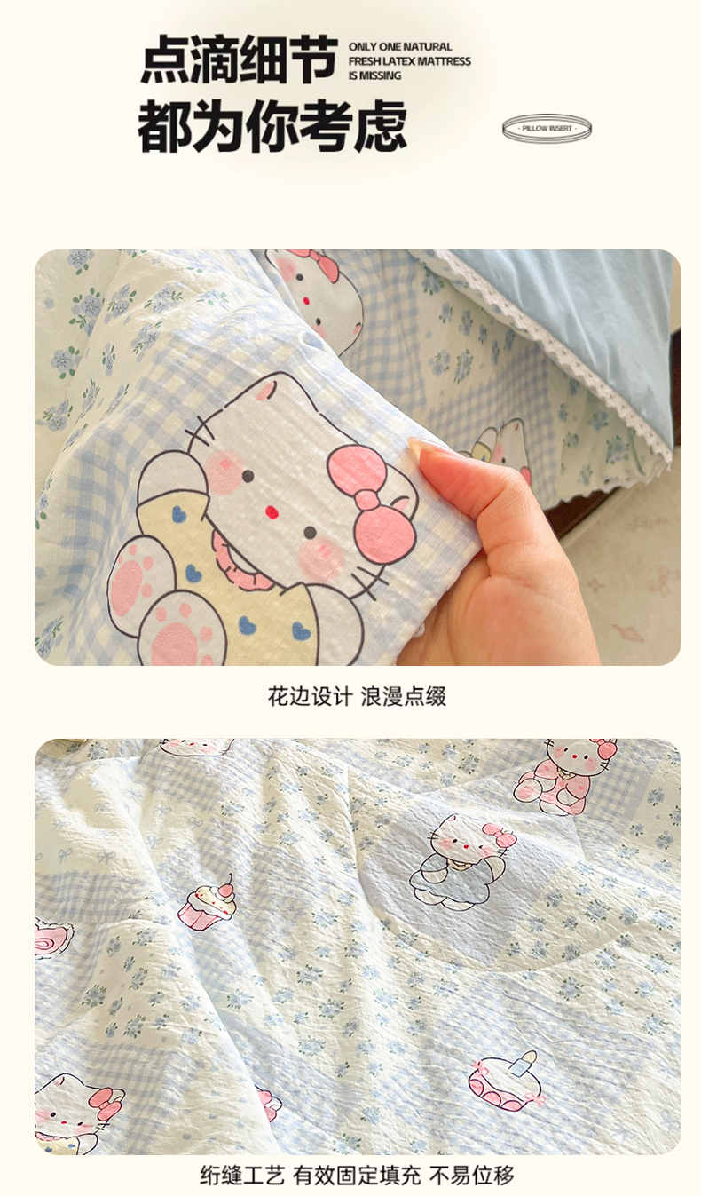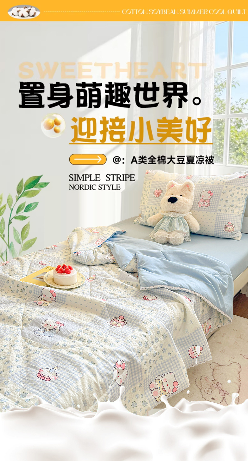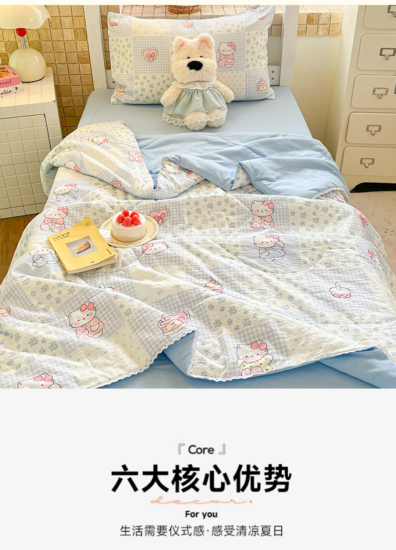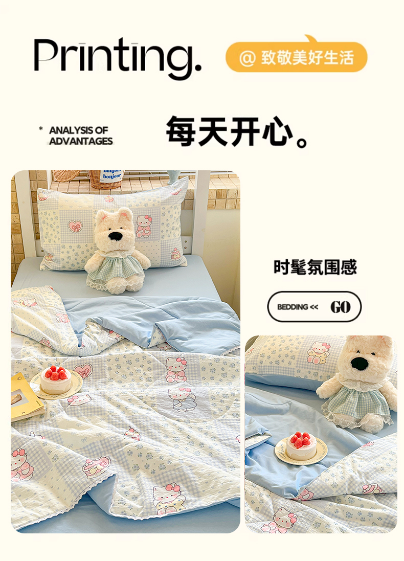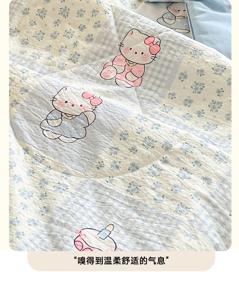 商品名称:川悦生活 2026春夏新款双层纱皱皱纱学生床夏被夏凉被空调被三件套 夏被小猫庄园