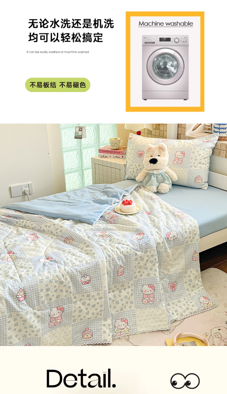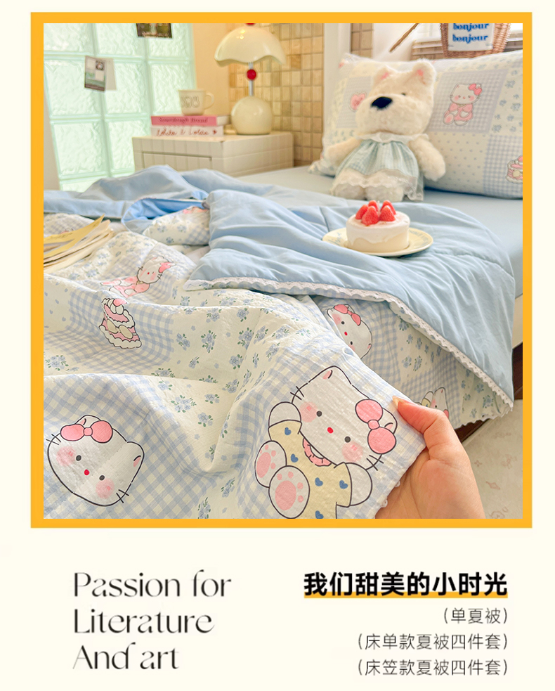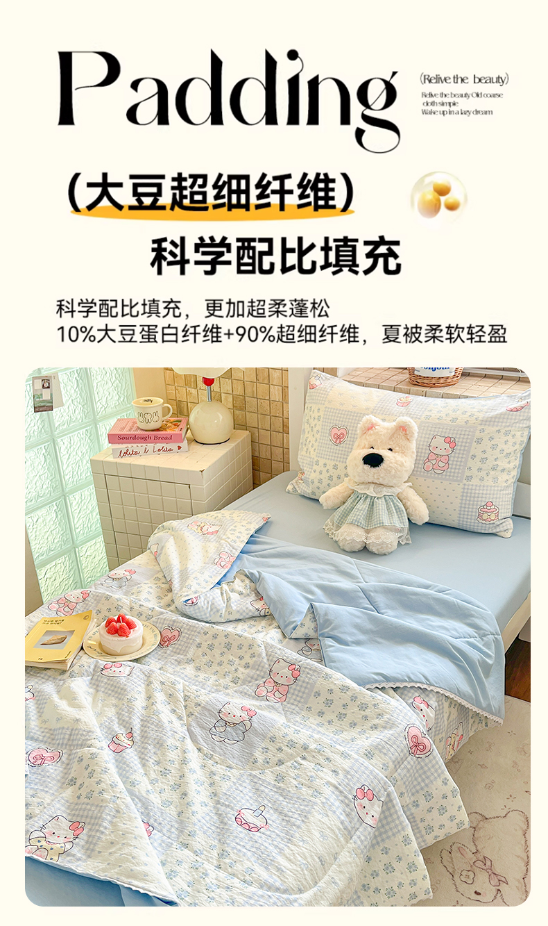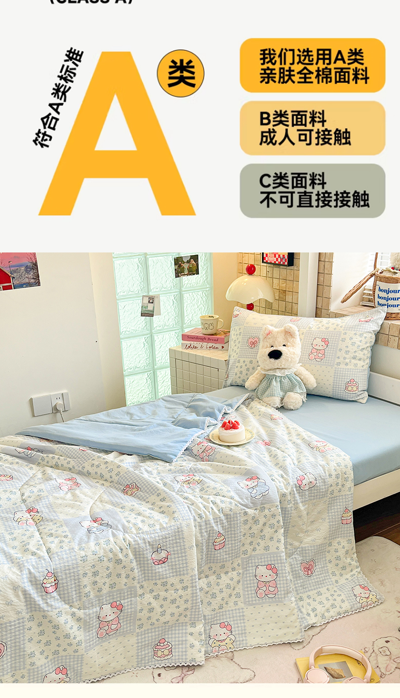 商品名称:川悦生活 2026春夏新款双层纱皱皱纱学生床夏被夏凉被空调被三件套 夏被小猫庄园