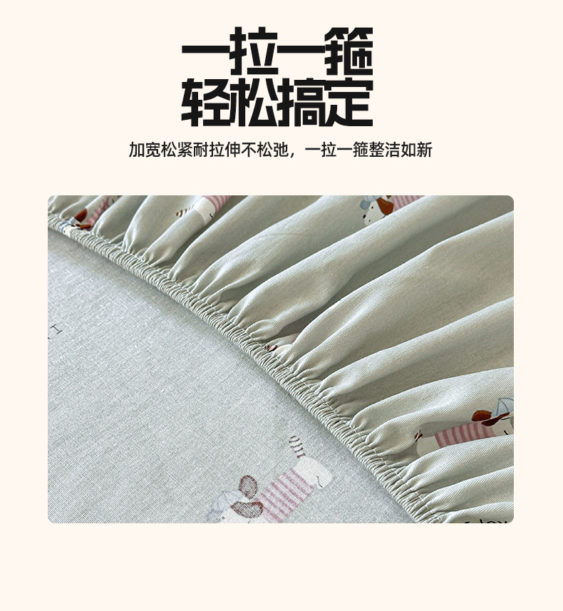 优眠坊 2026春夏新款全棉印花卡通单床笠 绿茵