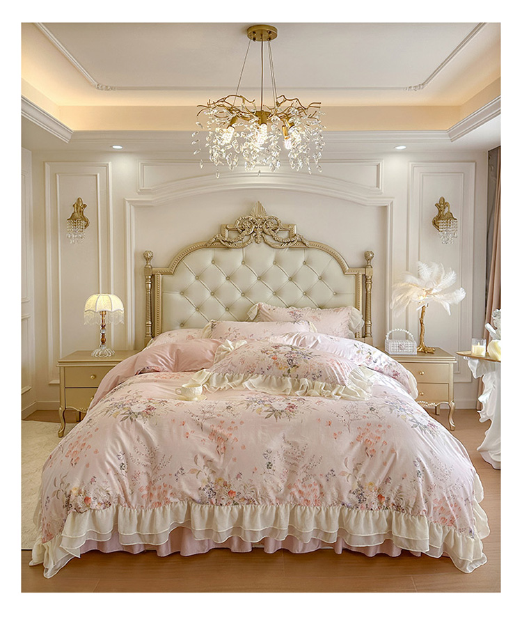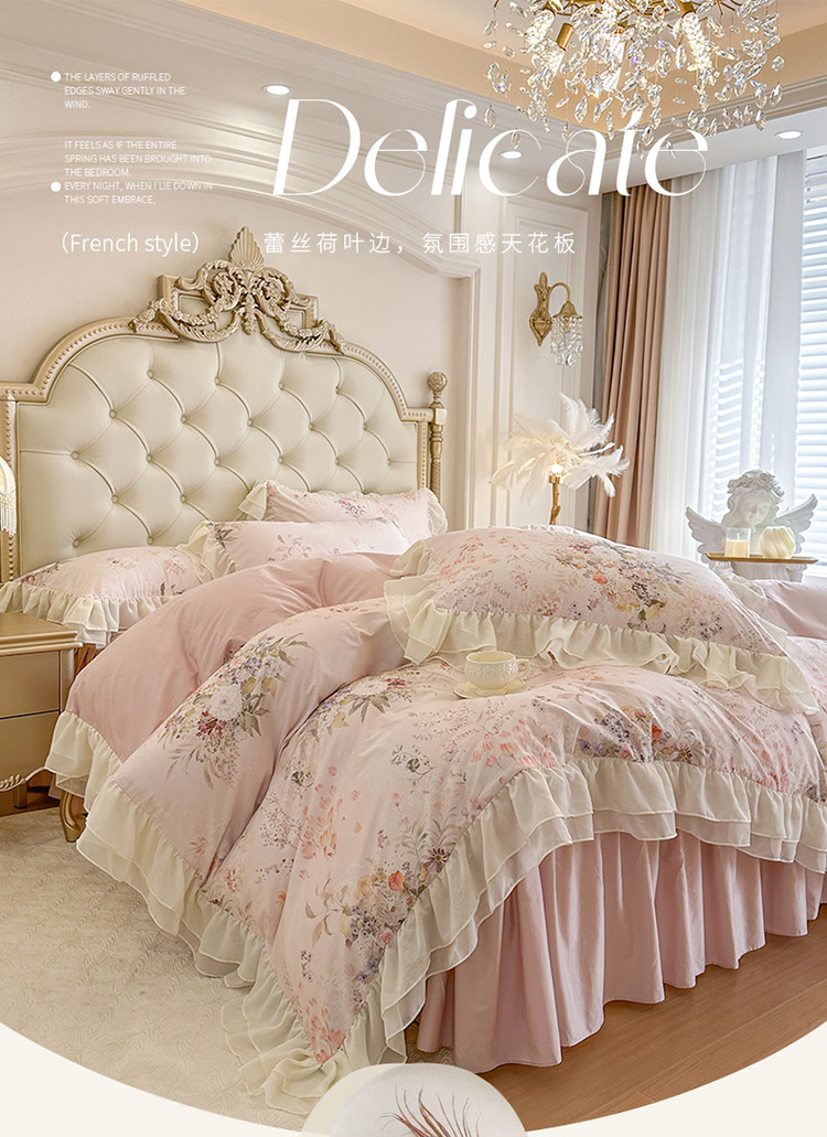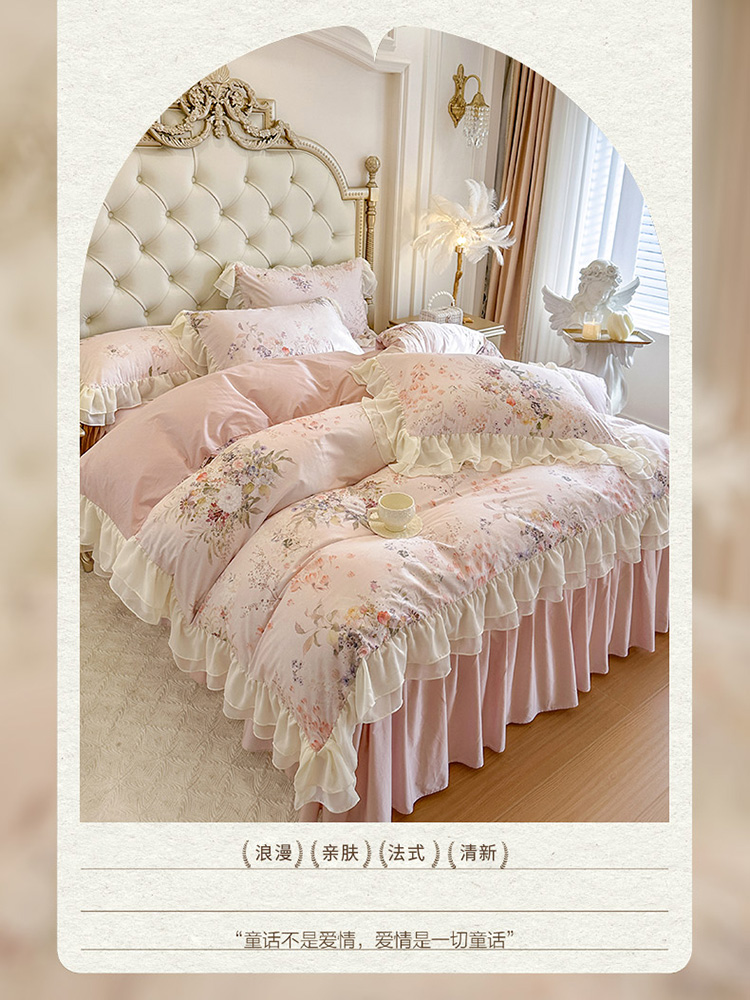 当前位置: 91家纺网 > 商品网购 > 床品套件 > 四件套 > 全棉普通四件套 > (总)亲亲公主 2026新款全棉纯棉蕾丝花边小清新印花床裙四件套