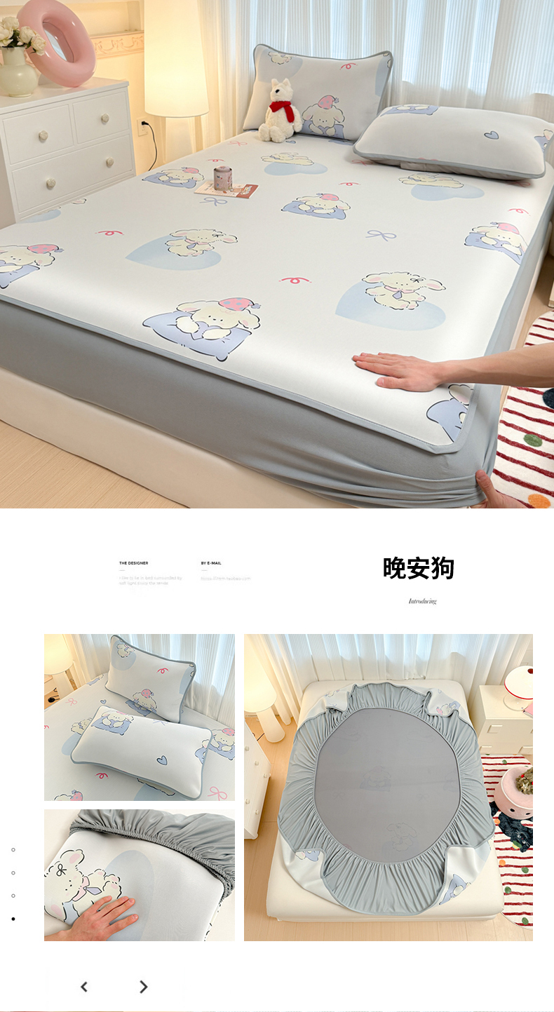 (总)布柔 2026新款冰皮凉席床笠冰丝小清新卡通印花软席可机洗,哈哈狗,初夏,哈基米,花语,蓝莓,礼物熊,铃兰兔,摩登时代,圣诞树,素叶,泰迪熊,条纹狗,晚安狗,小熊猫,绣球花,郁金香