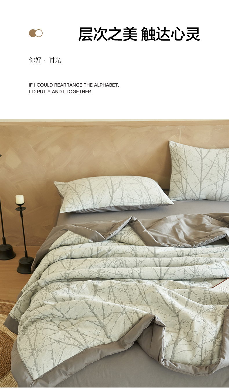 • 91家纺网 家纺一手货源 找家纺 晨曦家纺 2026春夏新款全棉纯棉水洗棉三层提花大豆夏被夏凉被空调被大豆夏被四件套 提花-树林灰