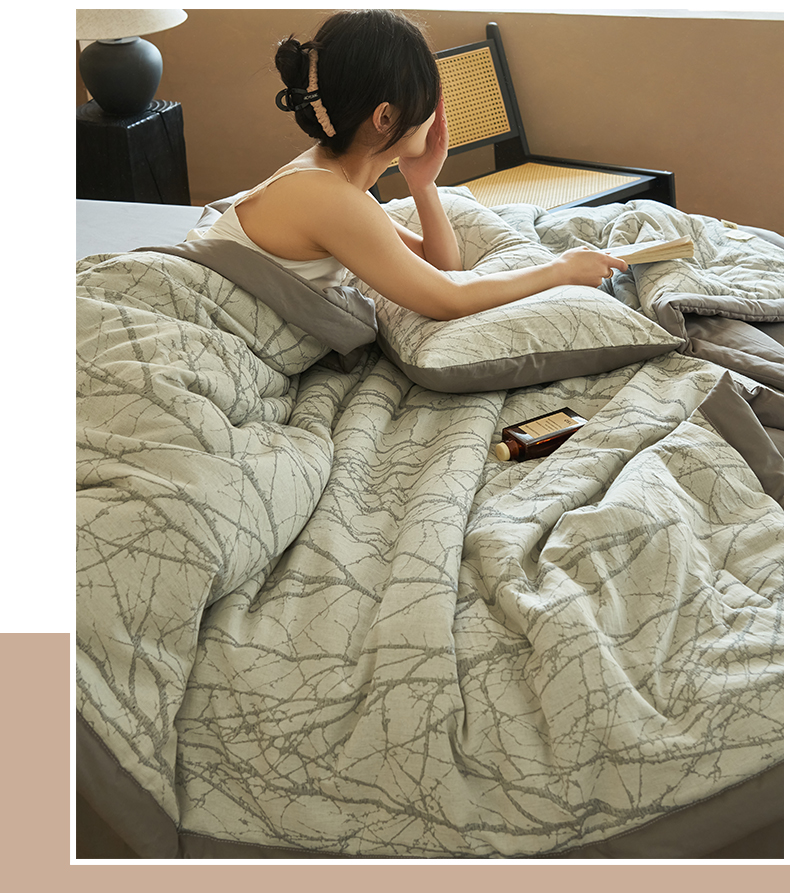 当前位置: 91家纺网 > 商品网购 > 被子 > 夏被 > 晨曦家纺 2026春夏新款全棉纯棉水洗棉三层提花大豆夏被夏凉被空调被大豆夏被四件套 提花-树林灰