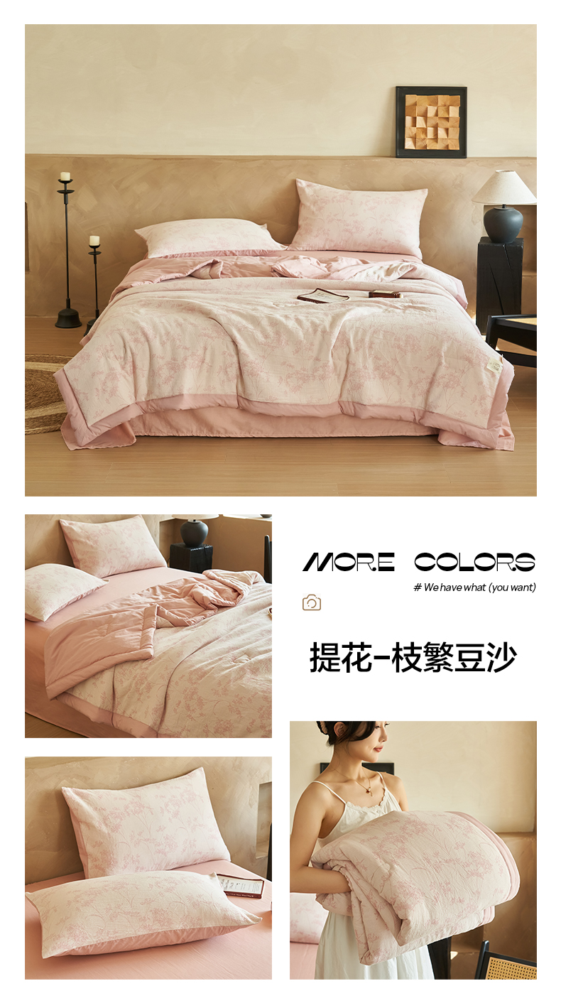 • 91家纺网 家纺一手货源 找家纺 (总)晨曦家纺 2026春夏新款全棉纯棉水洗棉三层提花大豆夏被夏凉被空调被大豆夏被四件套,提花-树林灰,提花-树林咖,提花-树林绿,提花-叶韵豆沙,提花-叶韵绿,提花-枝繁豆沙,提花-枝繁灰,提花-枝繁咖,组合图仅供展示不可下单