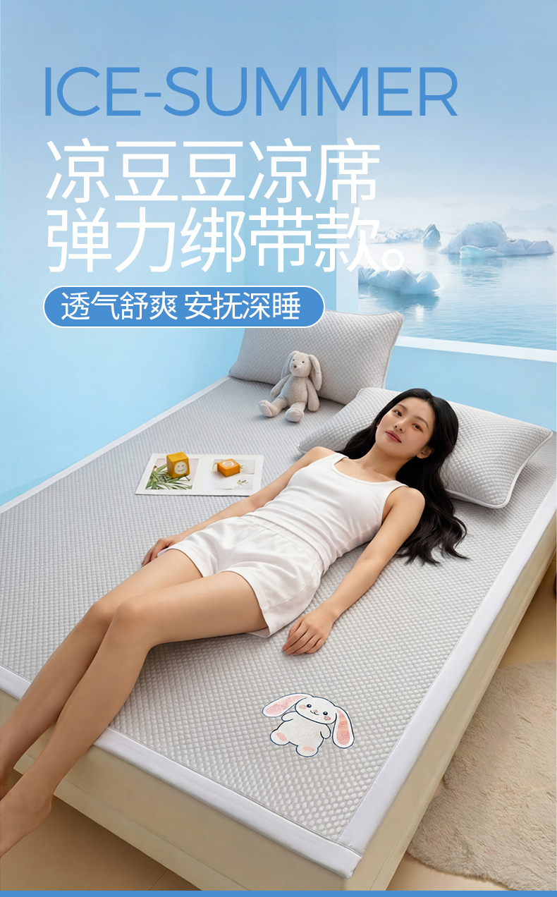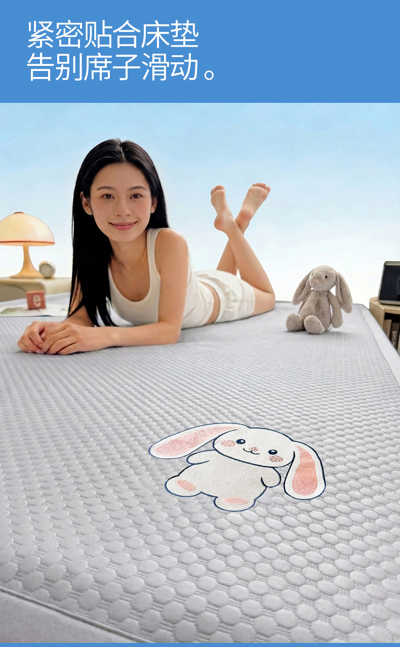 当前位置: 91家纺网 > 商品网购 > 床上用品 > 凉席 > 凉席套件 > 雯豆家纺 2026夏季新款绣花豆豆压花凉席三件套加厚三明治平铺席子纯色卡通凉席 大耳朵兔凉席款-银灰