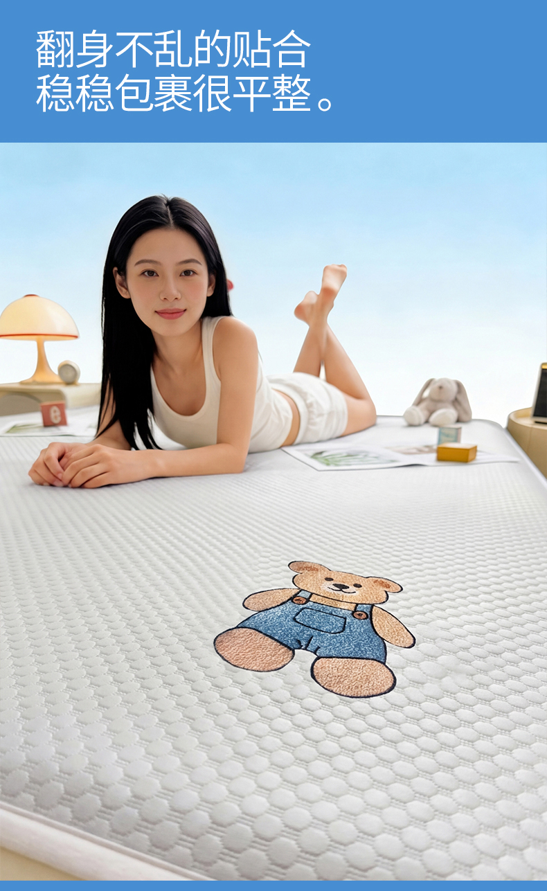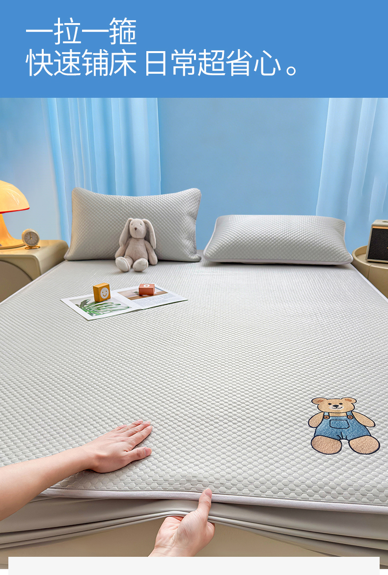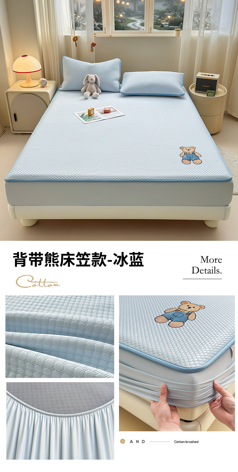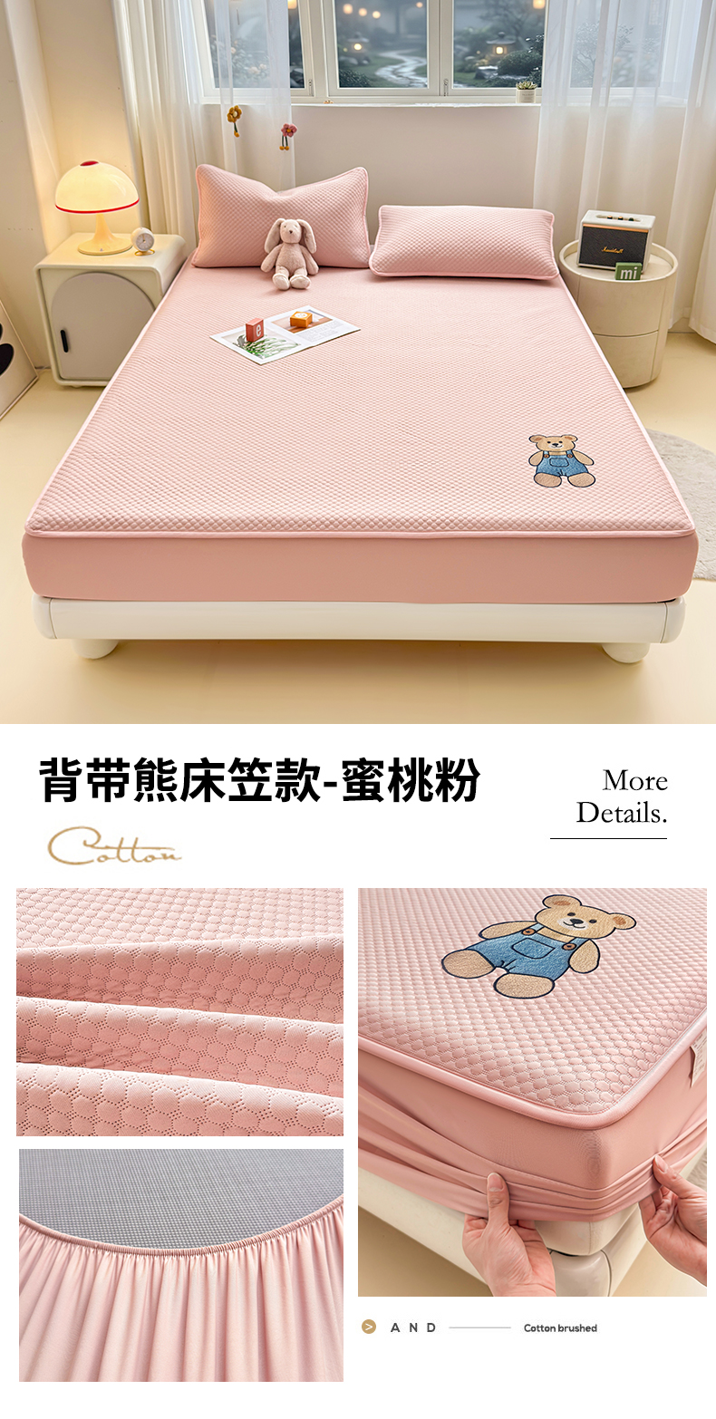 (总)雯豆家纺 2026新款夏季绣花三明治凉豆豆压花床笠三件套加厚床罩床垫保护套,背带熊床笠款-冰蓝,大耳朵兔床笠款-冰蓝,大耳朵兔床笠款-米黄,背带熊床笠款-银灰,大耳朵兔床笠款-蜜桃粉,背带熊床笠款-米黄,背带熊床笠款-苹果绿,背带熊床笠款-蜜桃粉,大耳朵兔床笠款-苹果绿,大耳朵兔床笠款-银灰