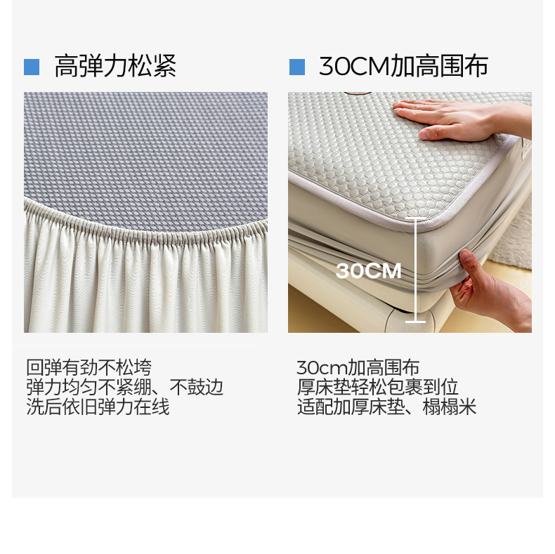 (总)雯豆家纺 2026春夏新品氨纶凉感床笠夹棉款床笠三件套床垫保护套,知夏-粉,知夏-黛蓝,知夏-浅灰,知夏-青草绿,知夏-深灰,知夏-水蓝,知夏-水绿
