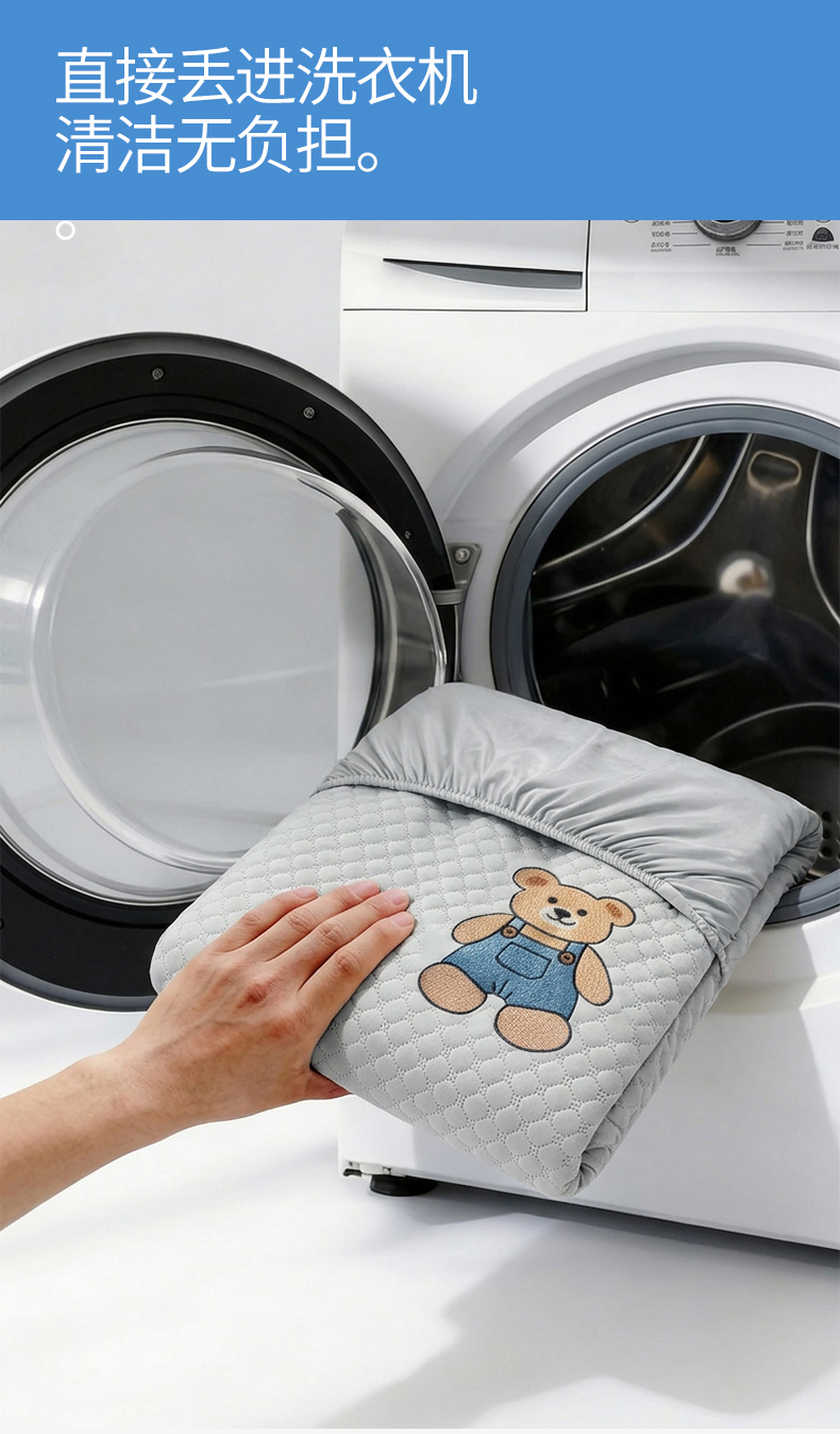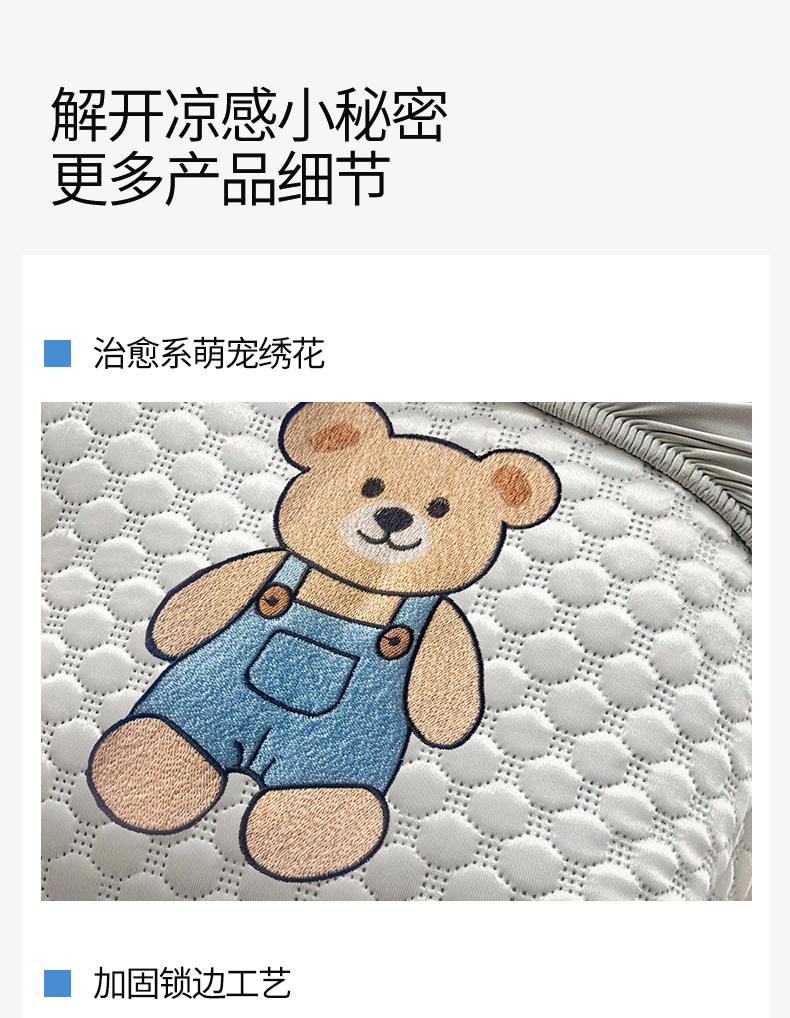 • 91家纺网 家纺一手货源 找家纺 雯豆家纺 2026新款夏季绣花三明治凉豆豆压花床笠三件套加厚床罩床垫保护套 背带熊床笠款-银灰