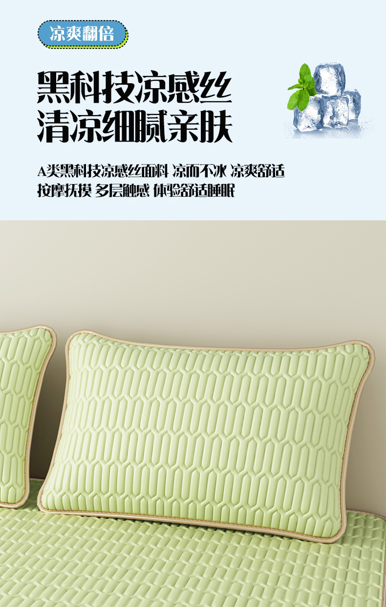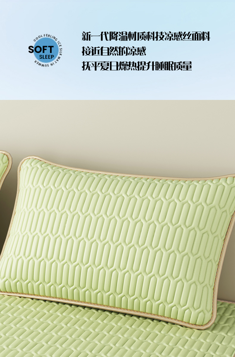 (总)奇丝雅 2026新款夏季A类碳光凉席三明治透气网冰丝凉席家用双人冰丝席床单可机洗单人学生宿舍上下铺夏天空调软席三件套,冰爽-粉,冰爽-灰,冰爽-蓝,冰爽-绿