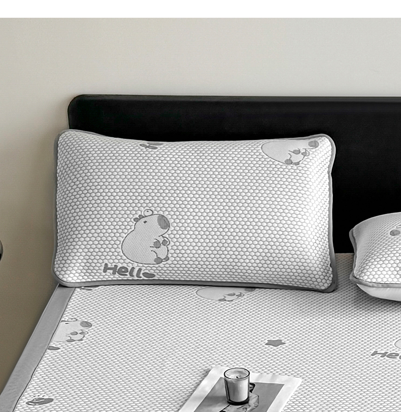 (总)奇丝雅 2026新款夏季A类卡通印花冰豆豆冰丝凉席枕套凉感家用可机洗单人学生宿舍48×74cm一只一对,巴比兔,抱抱熊,饼干熊,海洋世界,卡皮巴拉,蘑菇乐园,甜甜圈,小企鹅,熊猫家园,叶语