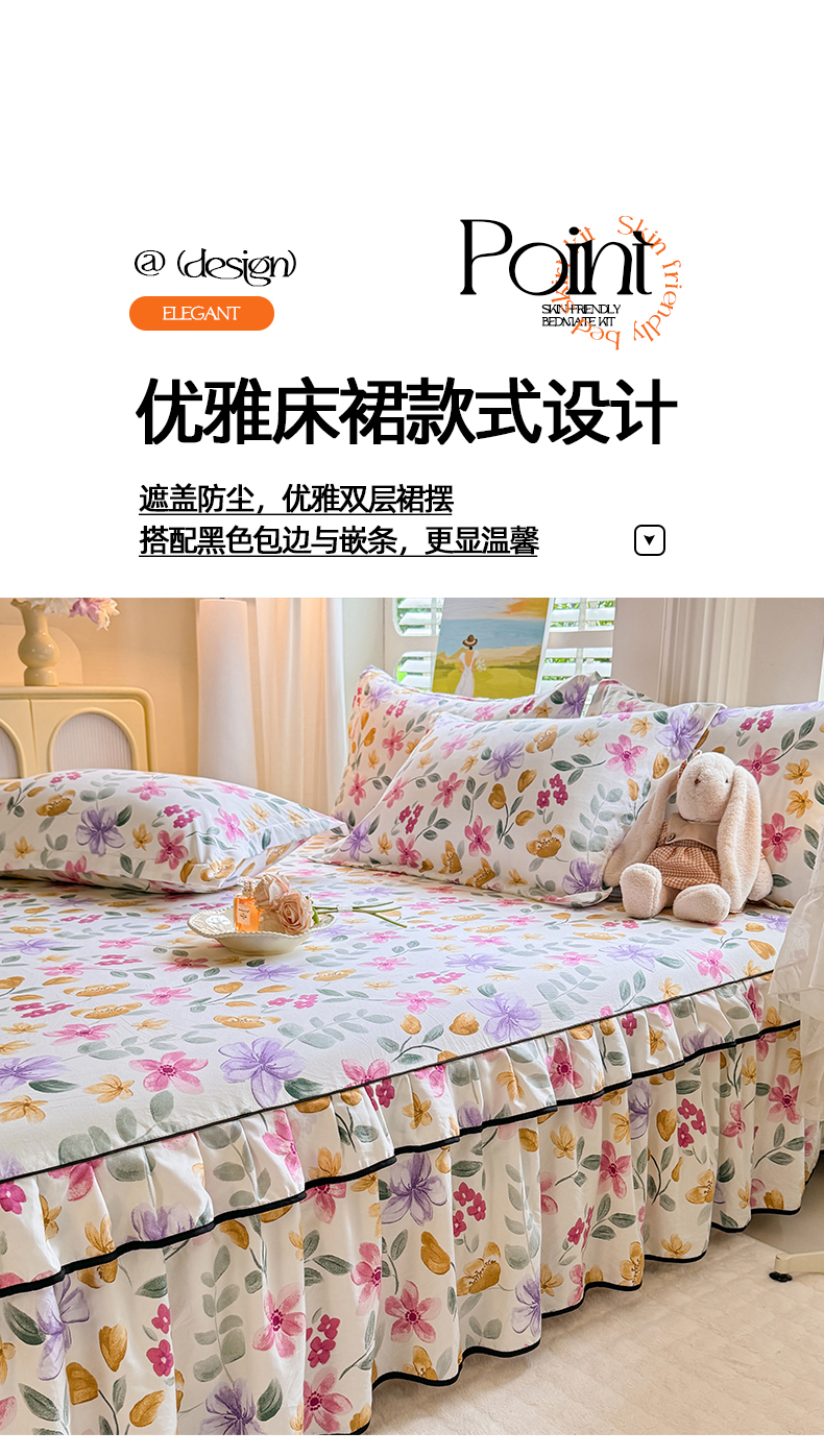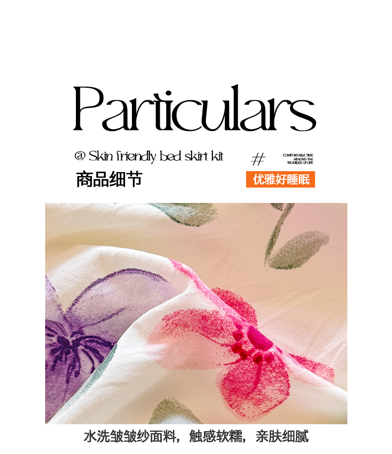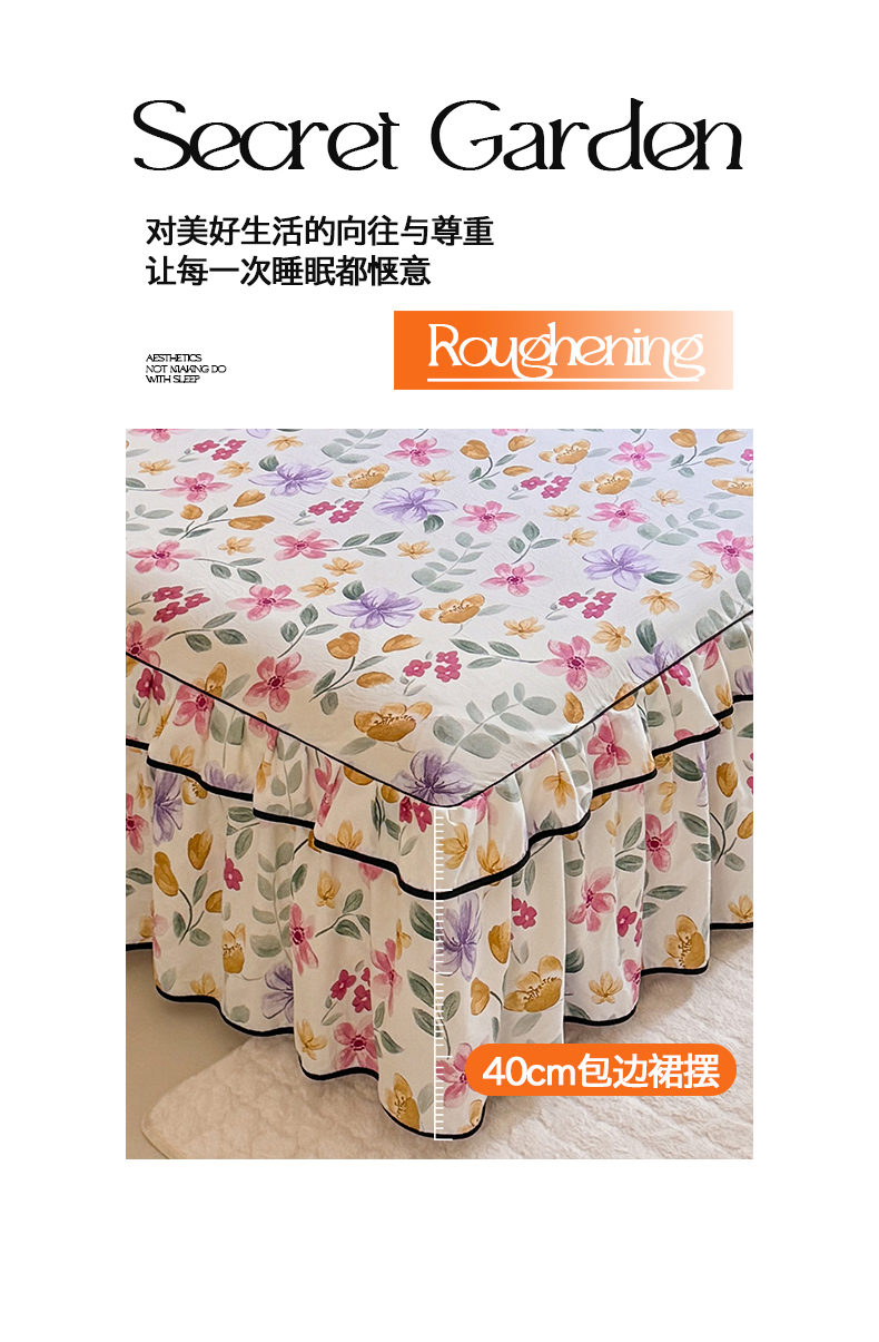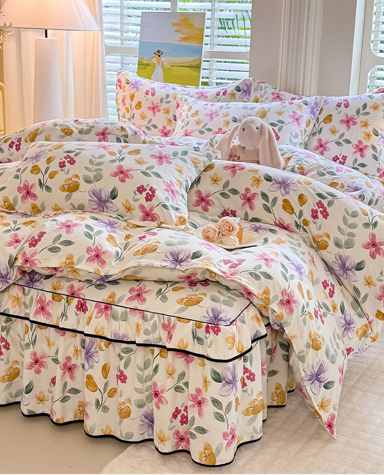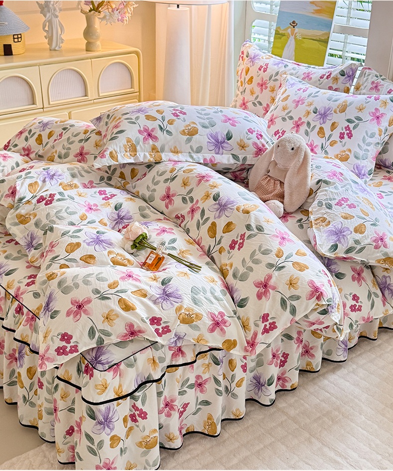 当前位置: 91家纺网 > 商品网购 > 床品套件 > 四件套 > 化纤普通四件套 > 优家居 2026新款A类水洗棉床裙四件套皱皱纱韩版公主风花边床罩直播爆款外贸定制 繁花似锦