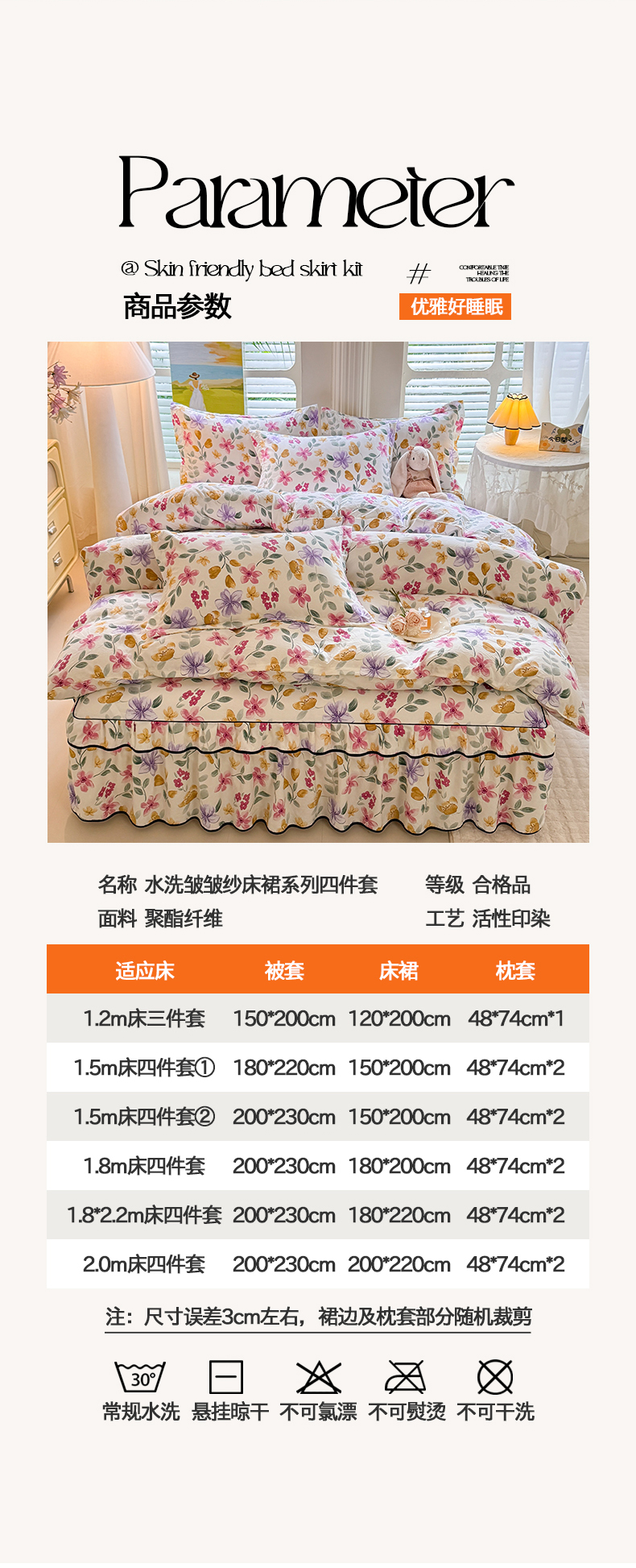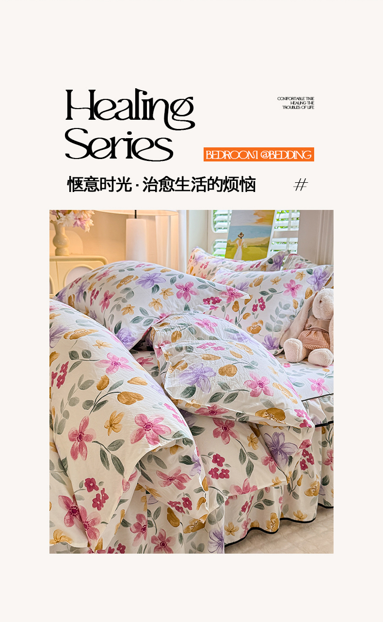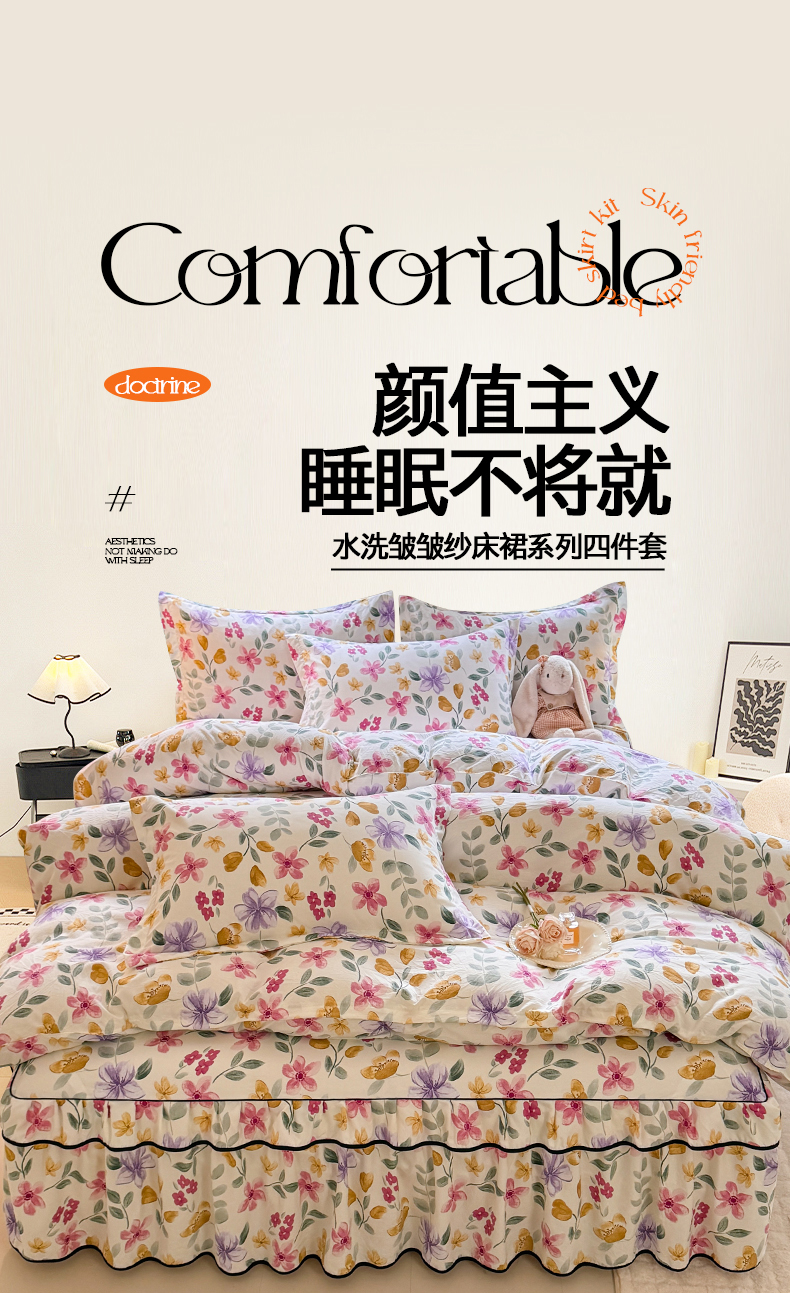 当前位置: 91家纺网 > 商品网购 > 床品套件 > 四件套 > 化纤普通四件套 > 优家居 2026新款A类水洗棉床裙四件套皱皱纱韩版公主风花边床罩直播爆款外贸定制 繁花似锦