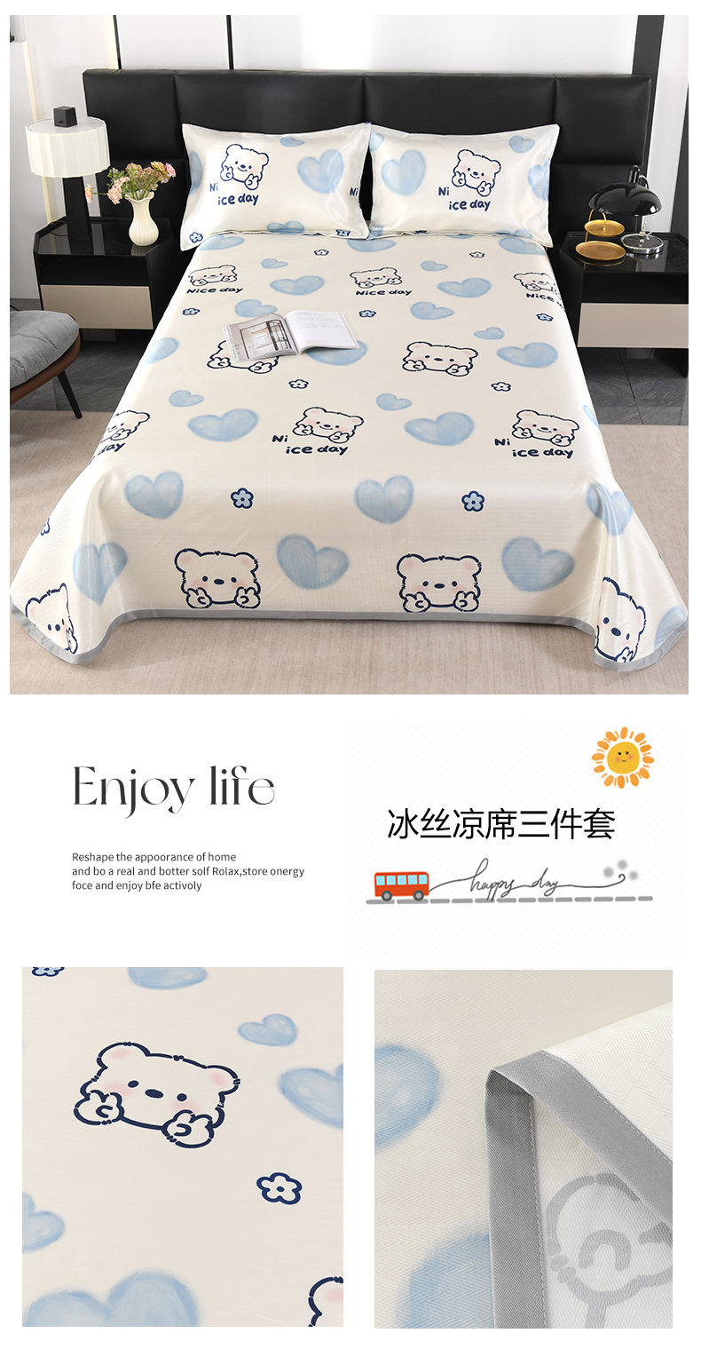(总)绒品壹家家纺 2026新款立体数码印花凉感丝冰丝席软凉席席子三件套,暴力兔,晨园幽香,发财树 灰,繁花,富丽堂皇,蝴蝶 粉,花舞,花影,花语,铃兰花,轻奢欧式,轻奢生活,清凉一夏 黄,清凉一夏 绿,趣味星,三生有幸 粉,三生有幸 蓝,相思 桔粉,相思 灰,小熊 蓝,幸福鹿,熊猫 绿,叶叶风情,云朵 蓝,马运享通