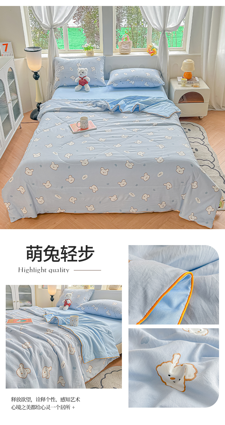 商品名称:富艺隆 2026新款A类水洗棉双层纱夏被空调被 皱皱纱夏凉被 幸运可爱兔