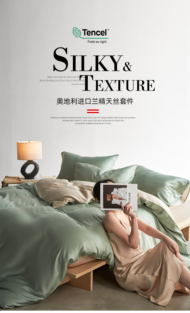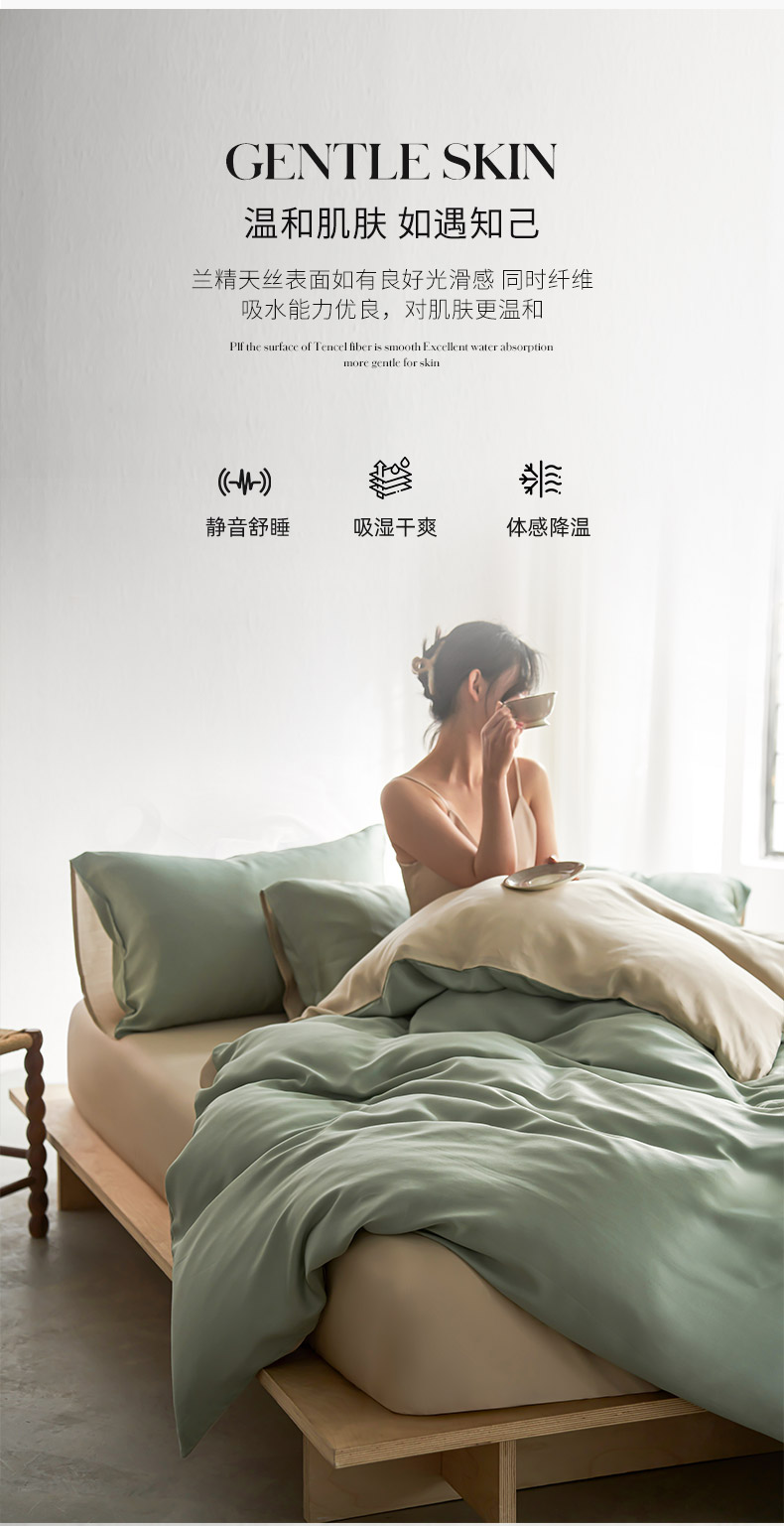 当前位置: 91家纺网 > 商品网购 > 床品套件 > 四件套 > 莱赛尔四件套 > 轩和家居 2026新款60支奥地利兰精天丝四件套 春熙绿+铂光金