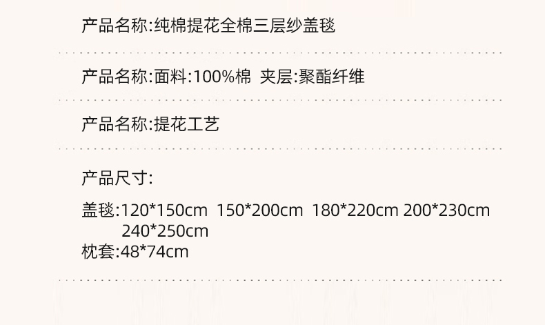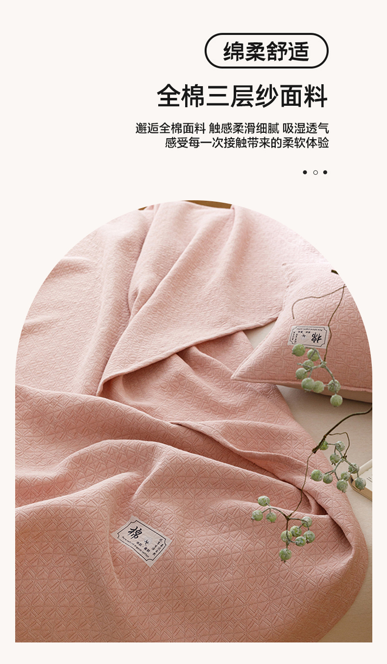 商品名称:悦然毛巾被 2026新款素色提花全棉三层纱盖毯毛巾被A类休闲毯 素野豆纱