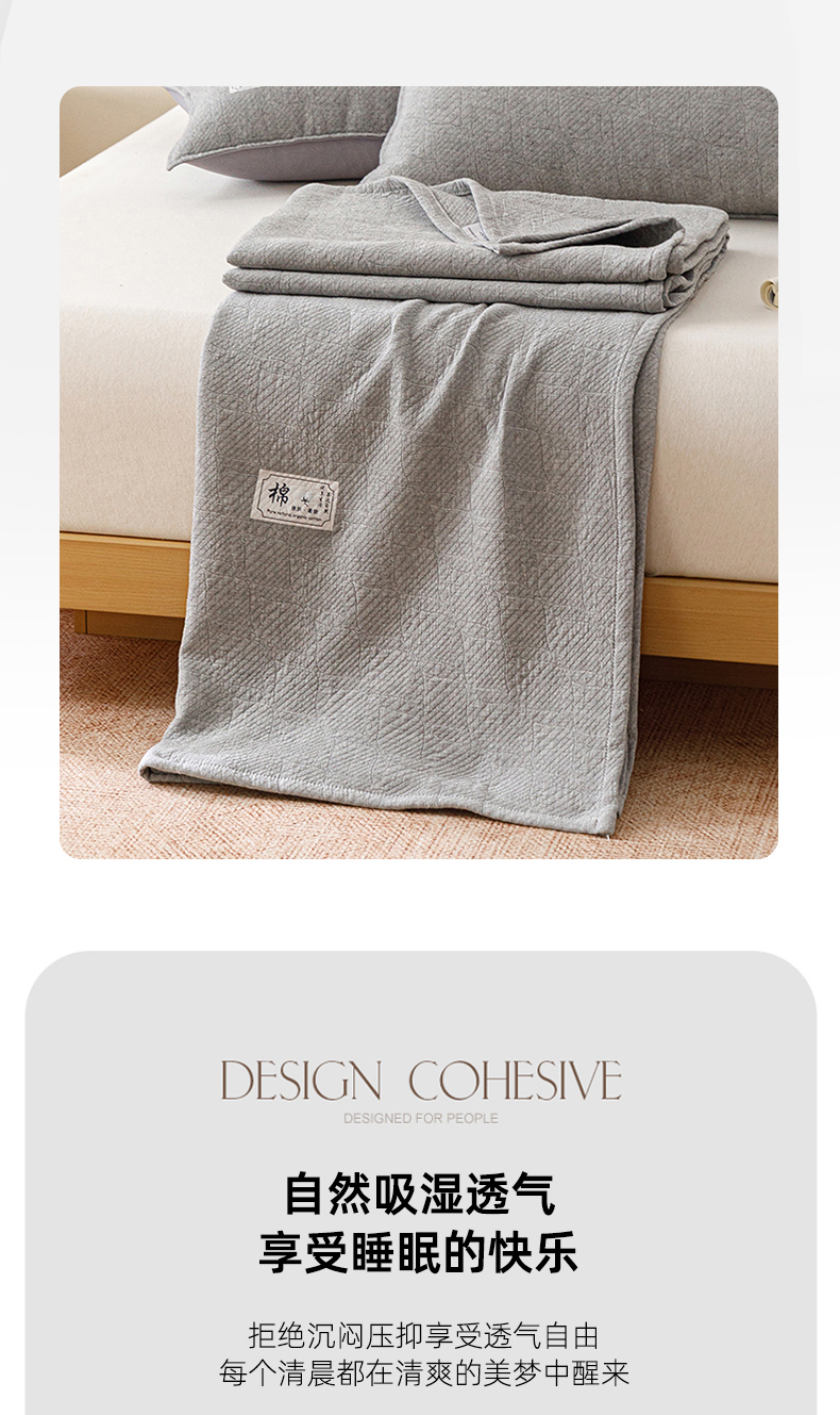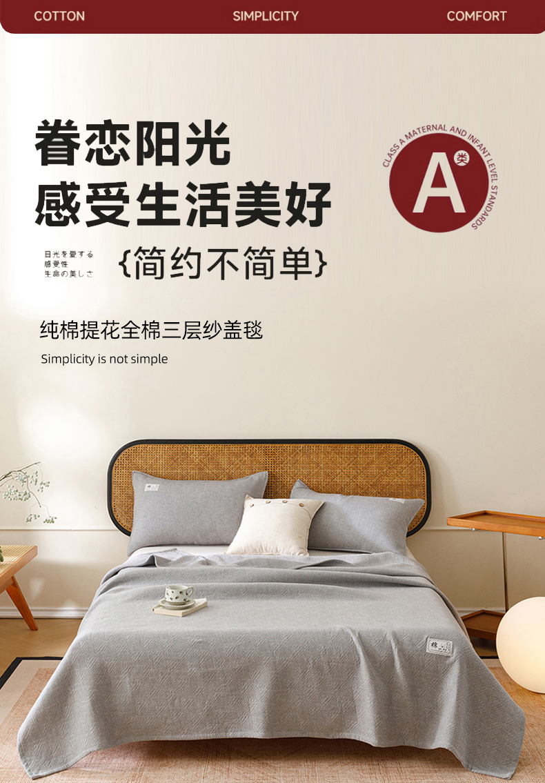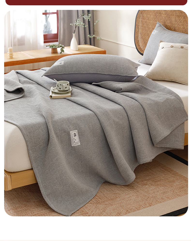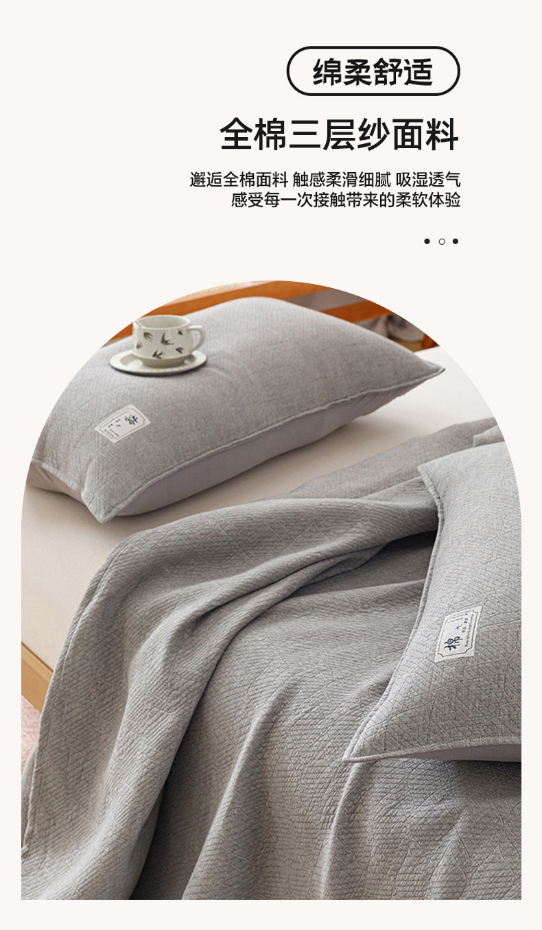 悦然毛巾被 2026新款素色提花全棉三层纱盖毯毛巾被A类休闲毯 织漫时光灰