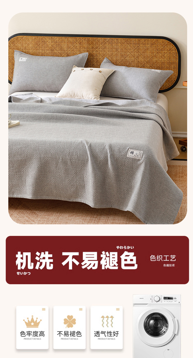 (总)悦然毛巾被 2026春夏新款A类全棉棉麻纯色四件套-山月素系列,山月素麻,山月素麻豆沙,山月素麻咖,山月素麻绿,山月素麻杏白
