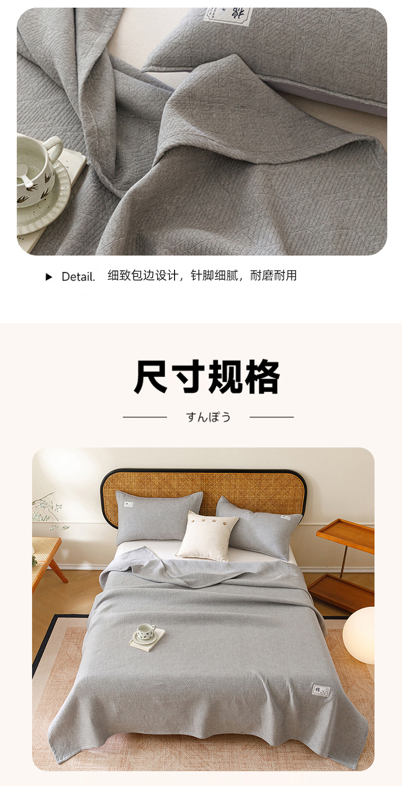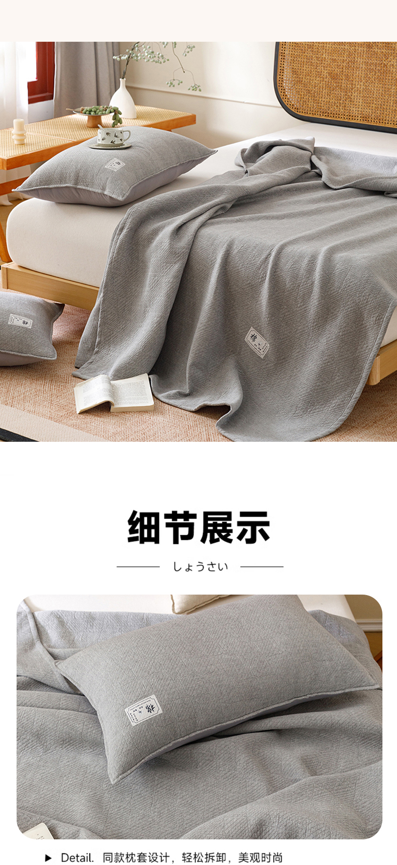 商品名称:悦然毛巾被 2026新款素色提花全棉三层纱盖毯毛巾被A类休闲毯 织漫时光灰