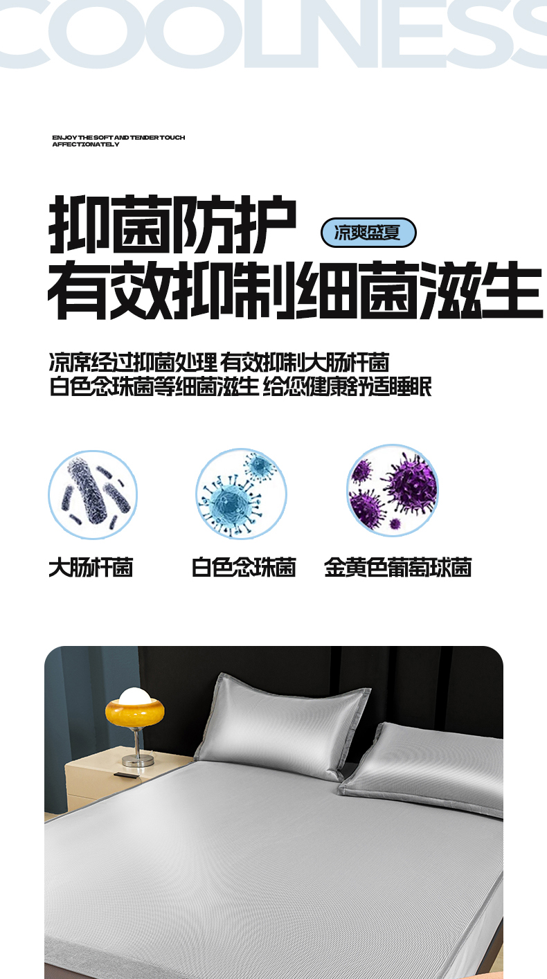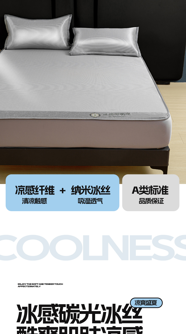 • 91家纺网 家纺一手货源 找家纺 (总)乐窝家纺仓储 2026新款A类抗菌碳光冰丝席冰藤席床笠款加厚三明治复合凉席三件套学生宿舍两件套,浅粉-床席款,水绿-床席款,天蓝-床席款,银灰-床席款,浅粉-床笠款,水绿-床笠款,天蓝-床笠款,银灰-床笠款