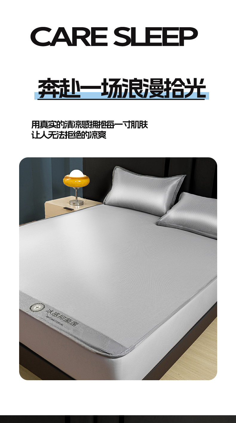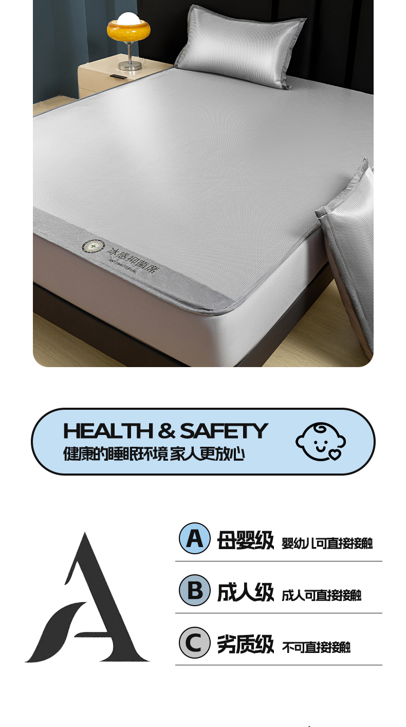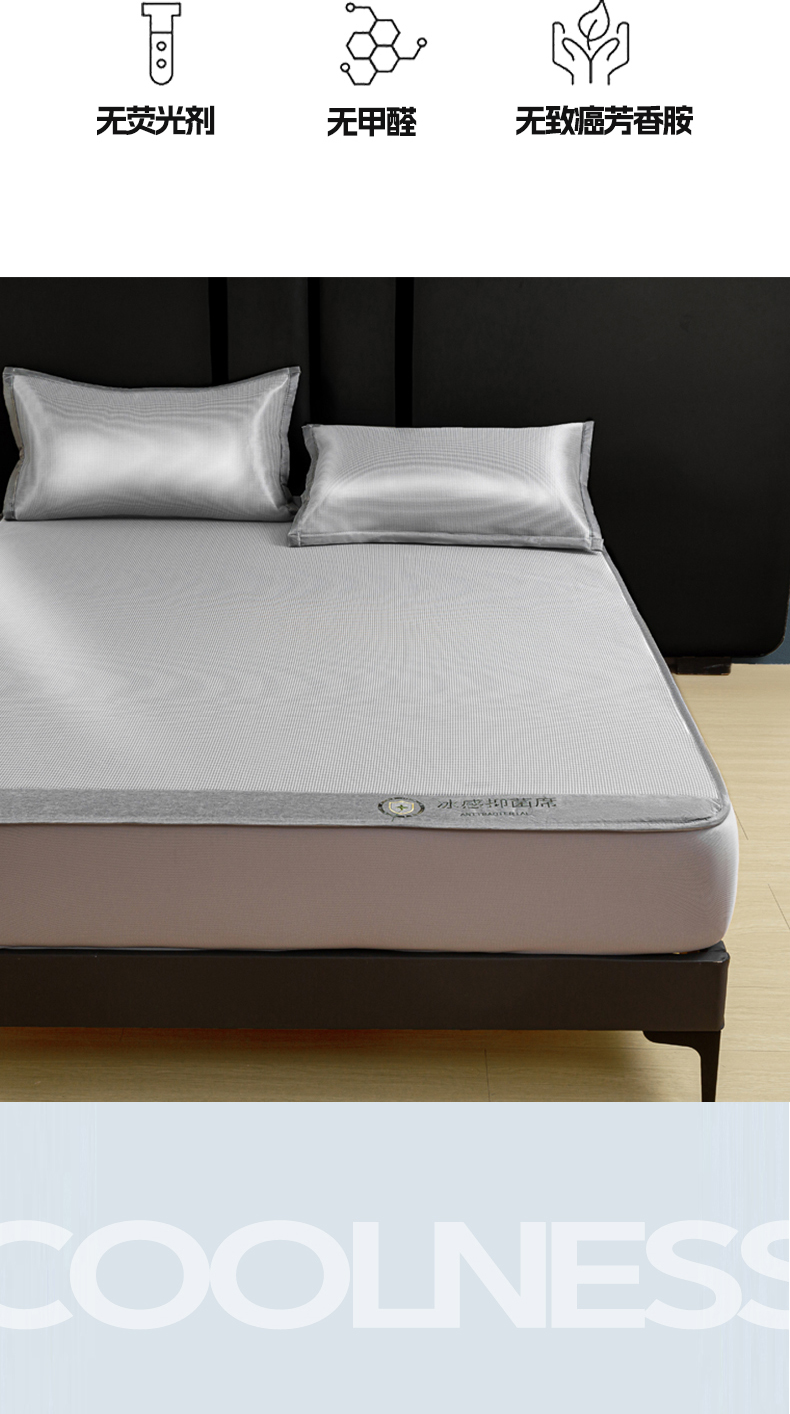 • 91家纺网 家纺一手货源 找家纺 乐窝家纺仓储 2026新款A类抗菌碳光冰丝席冰藤席床笠款加厚三明治复合凉席三件套学生宿舍两件套 银灰-床笠款