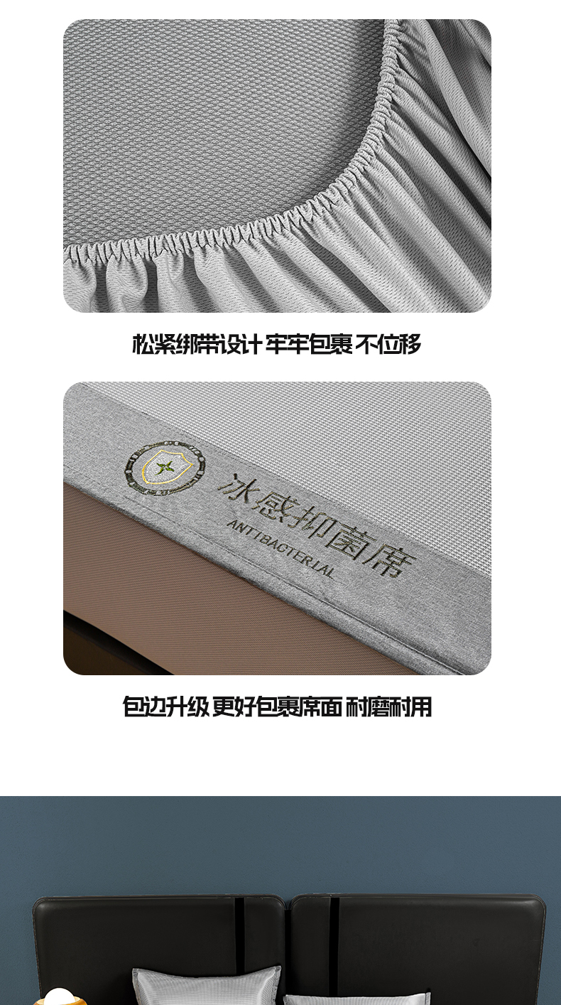 当前位置: 91家纺网 > 商品网购 > 床上用品 > 凉席 > 乐窝家纺仓储 2026新款A类抗菌碳光冰丝席冰藤席床笠款加厚三明治复合凉席三件套学生宿舍两件套 银灰-床笠款