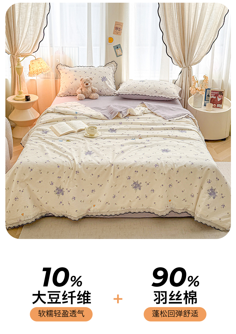 招财星家纺 2026新款A类全棉花边云感双层纱大豆纤维夏被四件套夏被夏凉被空调被(带质检报告买家秀) 花边款-花园秘密