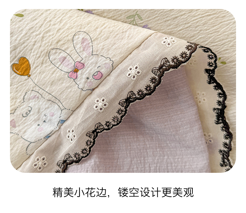 • 91家纺网 家纺一手货源 找家纺 (总)招财星家纺 2026新款A类全棉花边云感双层纱大豆纤维夏被四件套夏被夏凉被空调被(带质检报告买家秀),花边款-金枝玉叶,花边款-缤纷花朵,花边款-草莓气球,花边款-格子木马-蓝,花边款-格子木马-绿,花边款-花季,花边款-花语,花边款-花园秘密,花边款-可爱熊猫,花边款-喇叭花,花边款-绿曼,花边款-萌宠花园,花边款-幸运结-蓝,花边款-幸运结-绿,花边款-长颈鹿