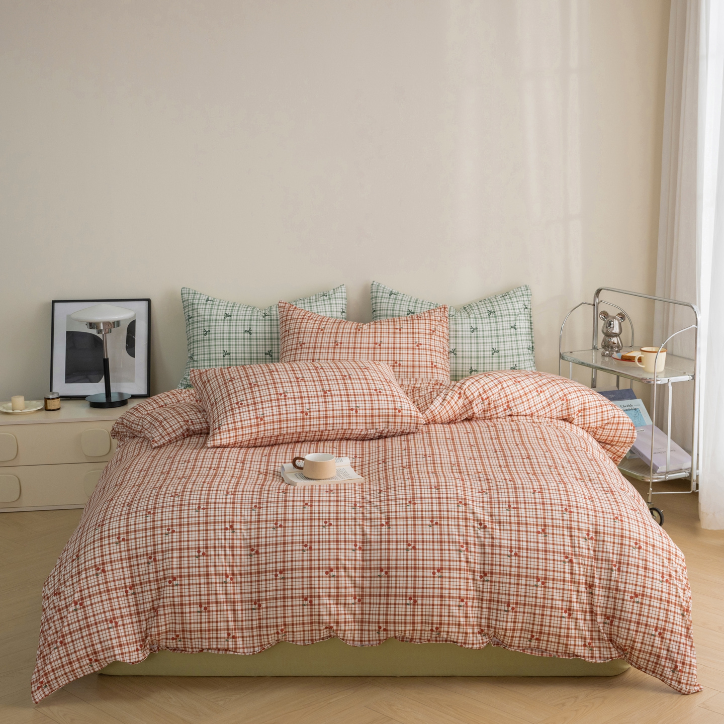 (总)梦可莱家居 2026春夏新款全棉纯棉针织棉印花小清新可爱Ins风四件套,波点蓝花,抱抱熊,比熊,波点红花,丁香花,格子蝴蝶,格子樱桃,海棠花,红玫瑰,咖格,腊梅,蓝花藤,露丝,绿意,秋天咖,杉叶,太阳花,条纹狗,兔小姐,知画,紫薇