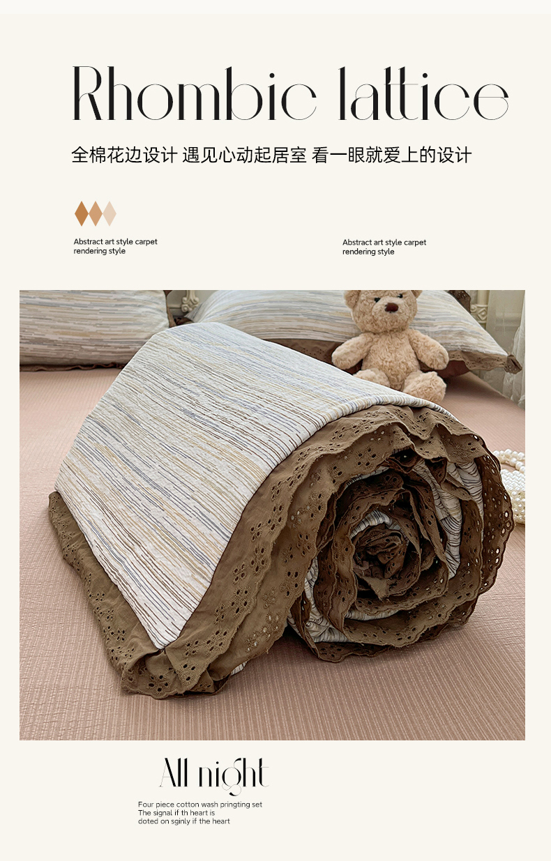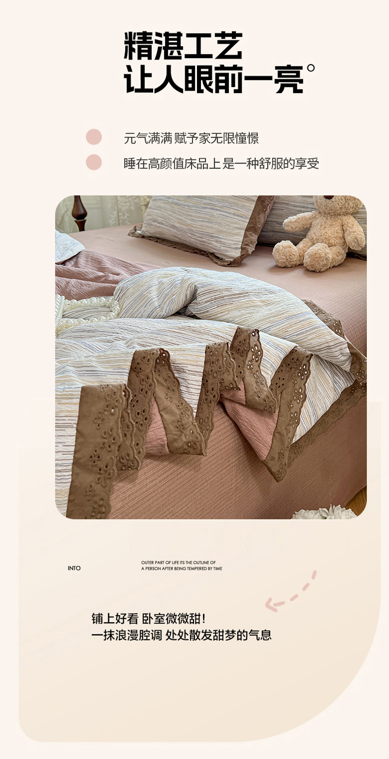 (总)优尚佳生活馆 2026新款A类仿棉水洗法式工艺花边四件套,巴黎粉屿,枫丹香谢,格纹河畔,花海,花开半夏,金马转运,曼塔蔷薇,秘密花园,奶豹栖塌,奶蓝碟语,青樱花梦,甜瓜条纹,条纹织梦,雾蓝香熏,鸳尾轻眠,云樱染紫