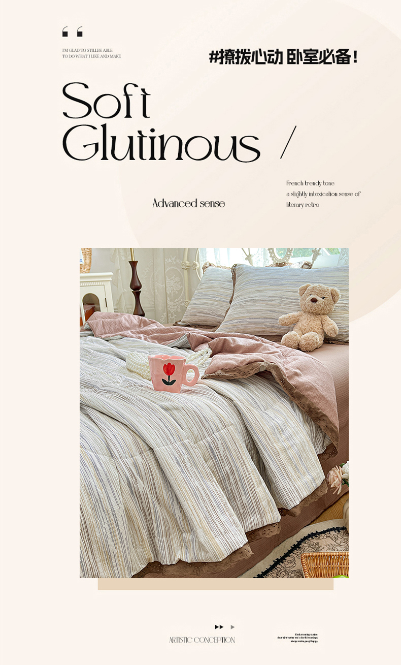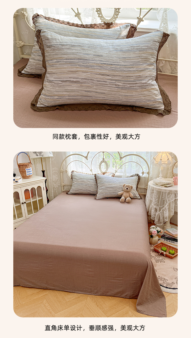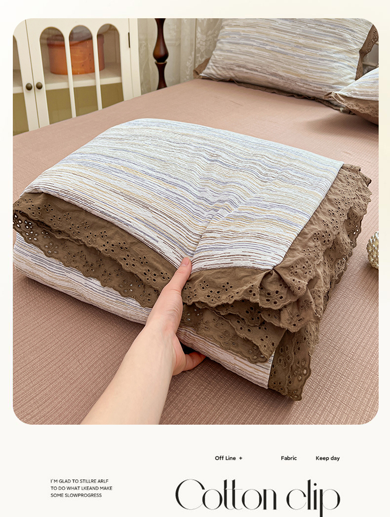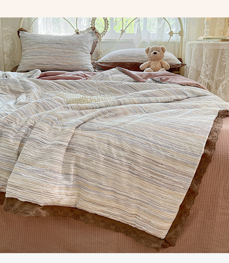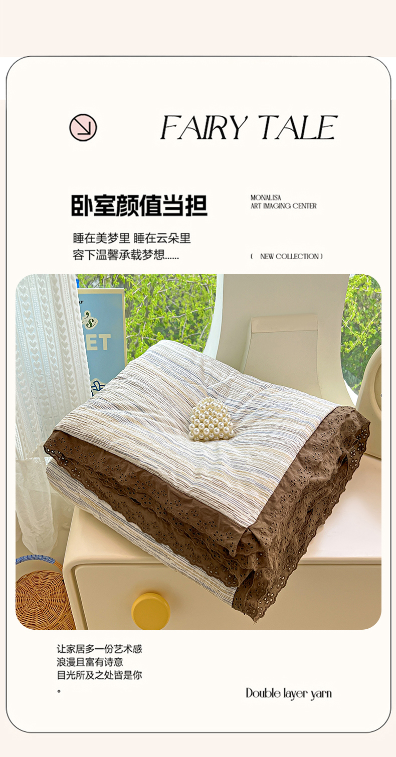 优尚佳生活馆 2026新款云感皱皱纱全棉花边款夏被四件套 暮纱