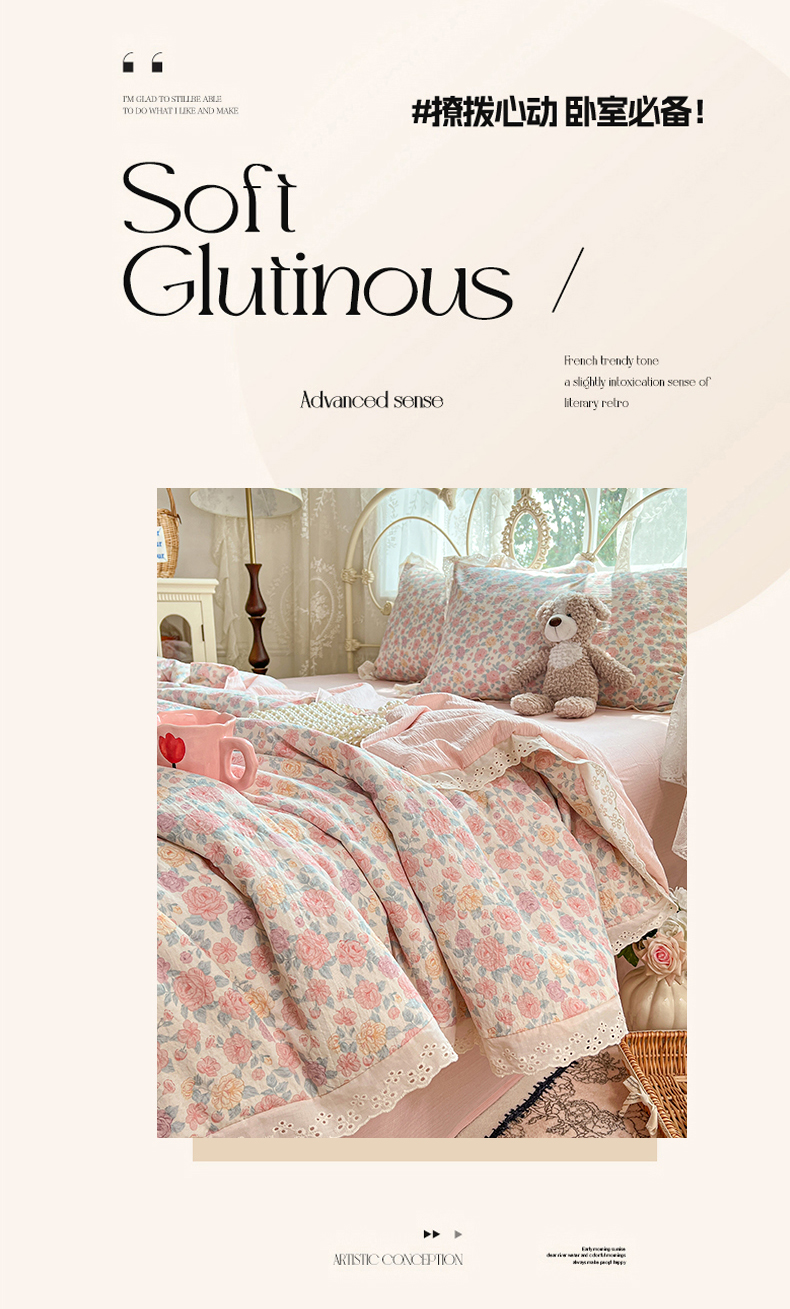 (总)优佳优品 2026新款A类仿棉水洗法式工艺花边四件套,雾蓝香熏,巴黎粉屿,枫丹香谢,格纹河畔,花海,花开半夏,金马转运,曼塔蔷薇,秘密花园,奶豹栖塌,奶蓝碟语,青樱花梦,甜瓜条纹,条纹织梦,鸳尾轻眠,云樱染紫