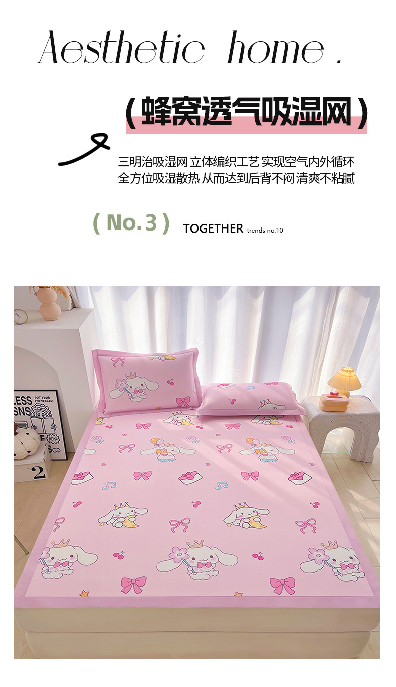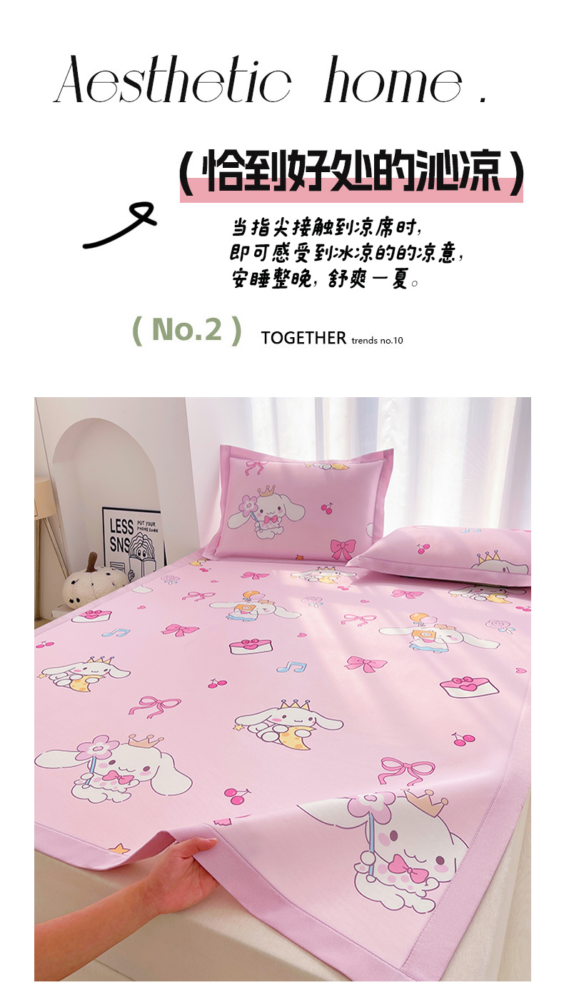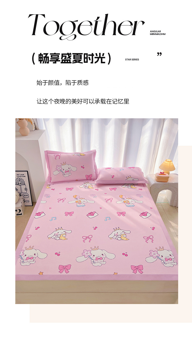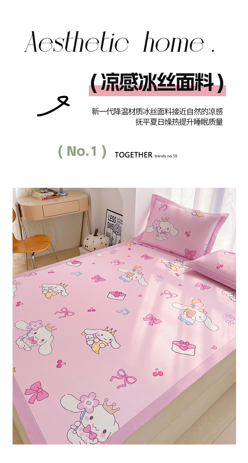 商品名称:云恋家纺 2026正版授权小版冰丝席卡通凉席三件套可折叠水洗软席子儿童单双人凉感空调席子 小版-蝴蝶结大耳狗