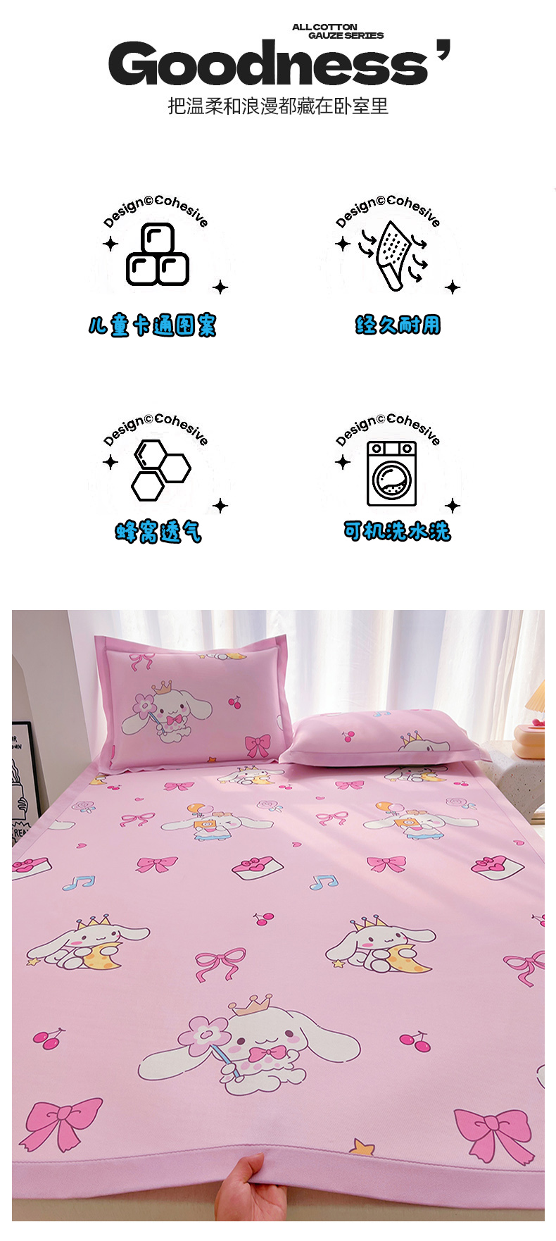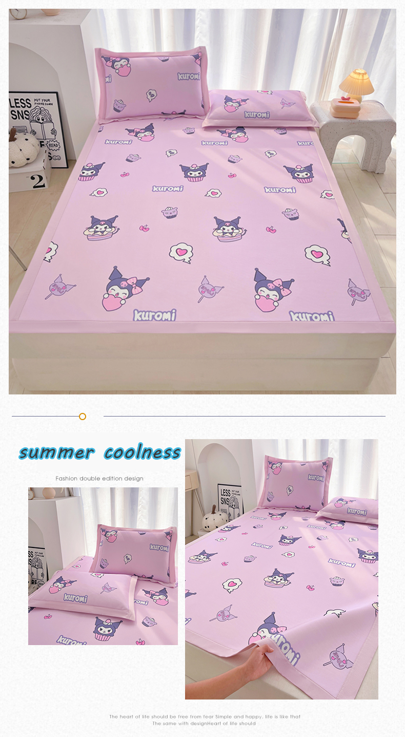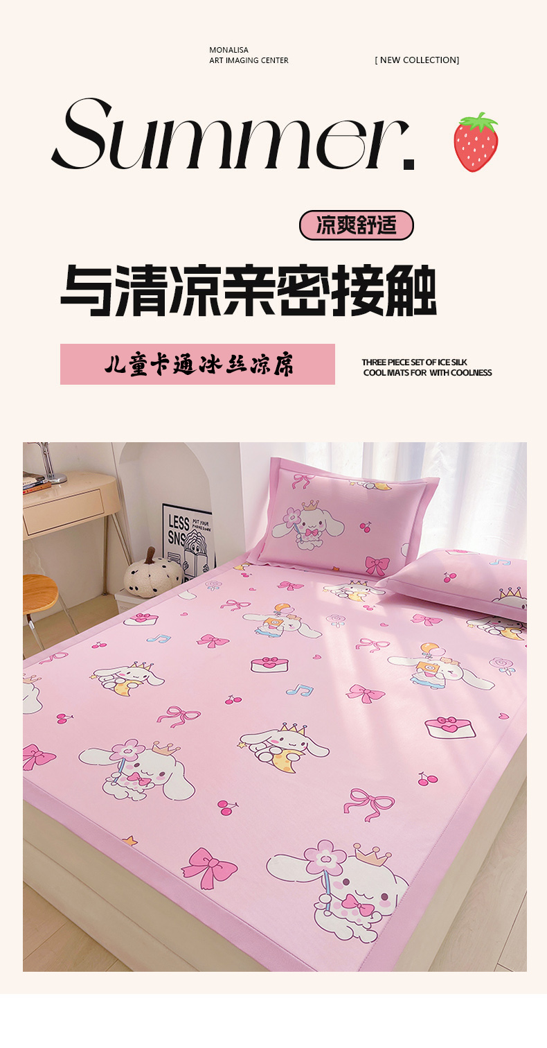 商品名称:云恋家纺 2026正版授权小版冰丝席卡通凉席三件套可折叠水洗软席子儿童单双人凉感空调席子 小版-蝴蝶结大耳狗