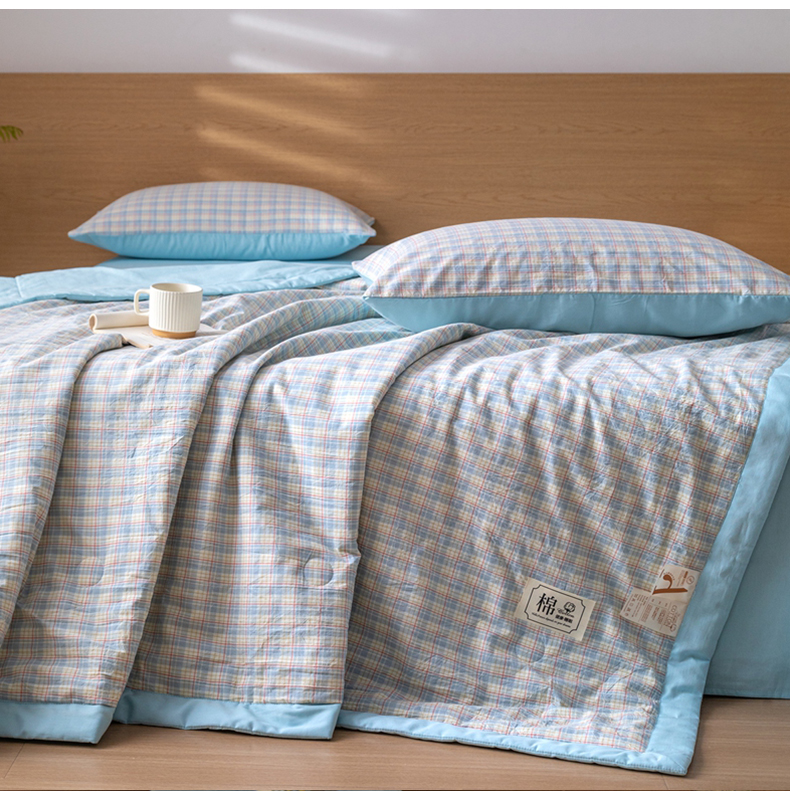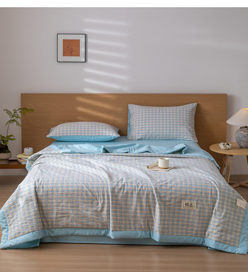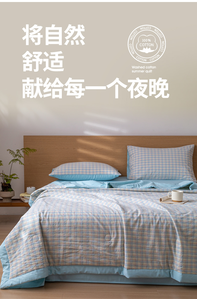 几禾 2026春夏新款色织水洗棉棉花夏被夏凉被空调被 密格蓝