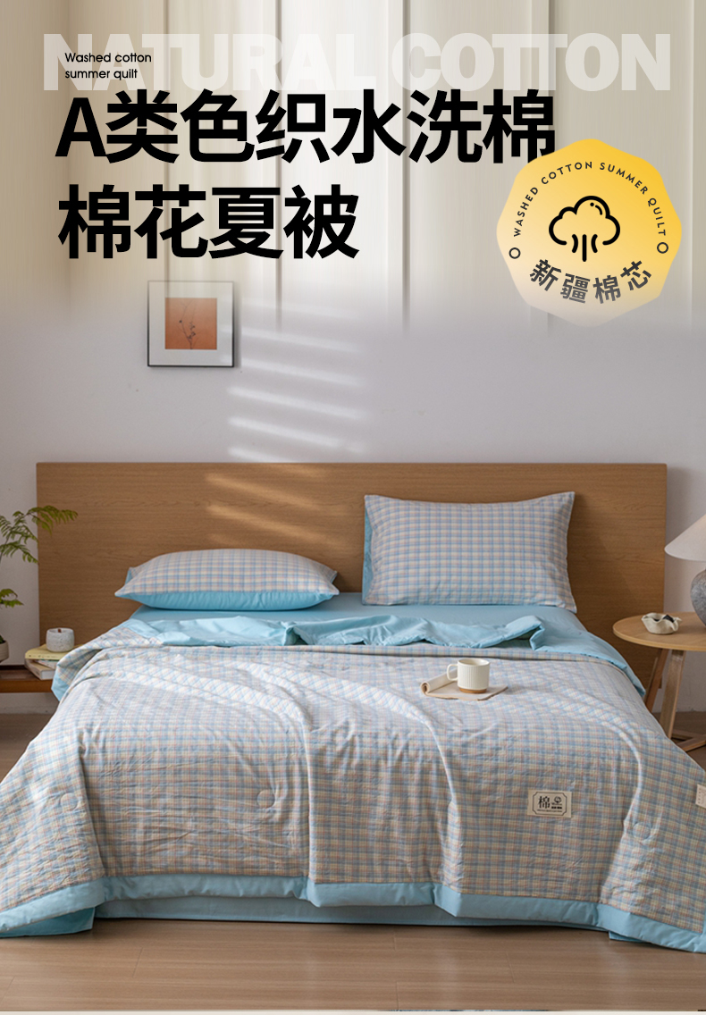 商品名称:几禾 2026春夏新款色织水洗棉棉花夏被夏凉被空调被 密格蓝