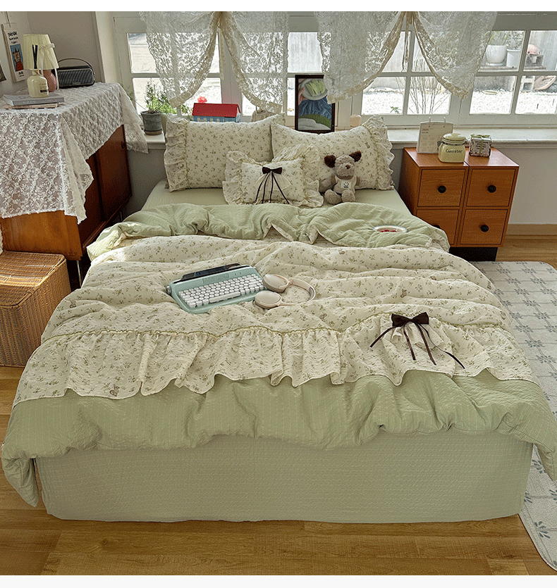 商品名称:(总)栩裕纺织 2026新款提花泡芙棉立体花边简约韩系夏被-夏被三件套四件套